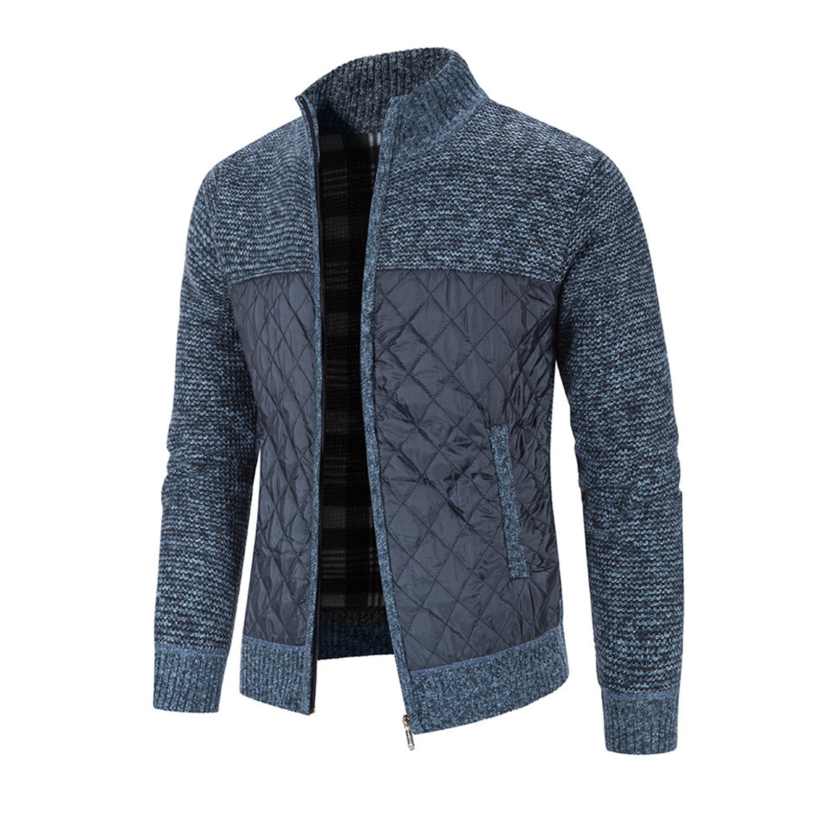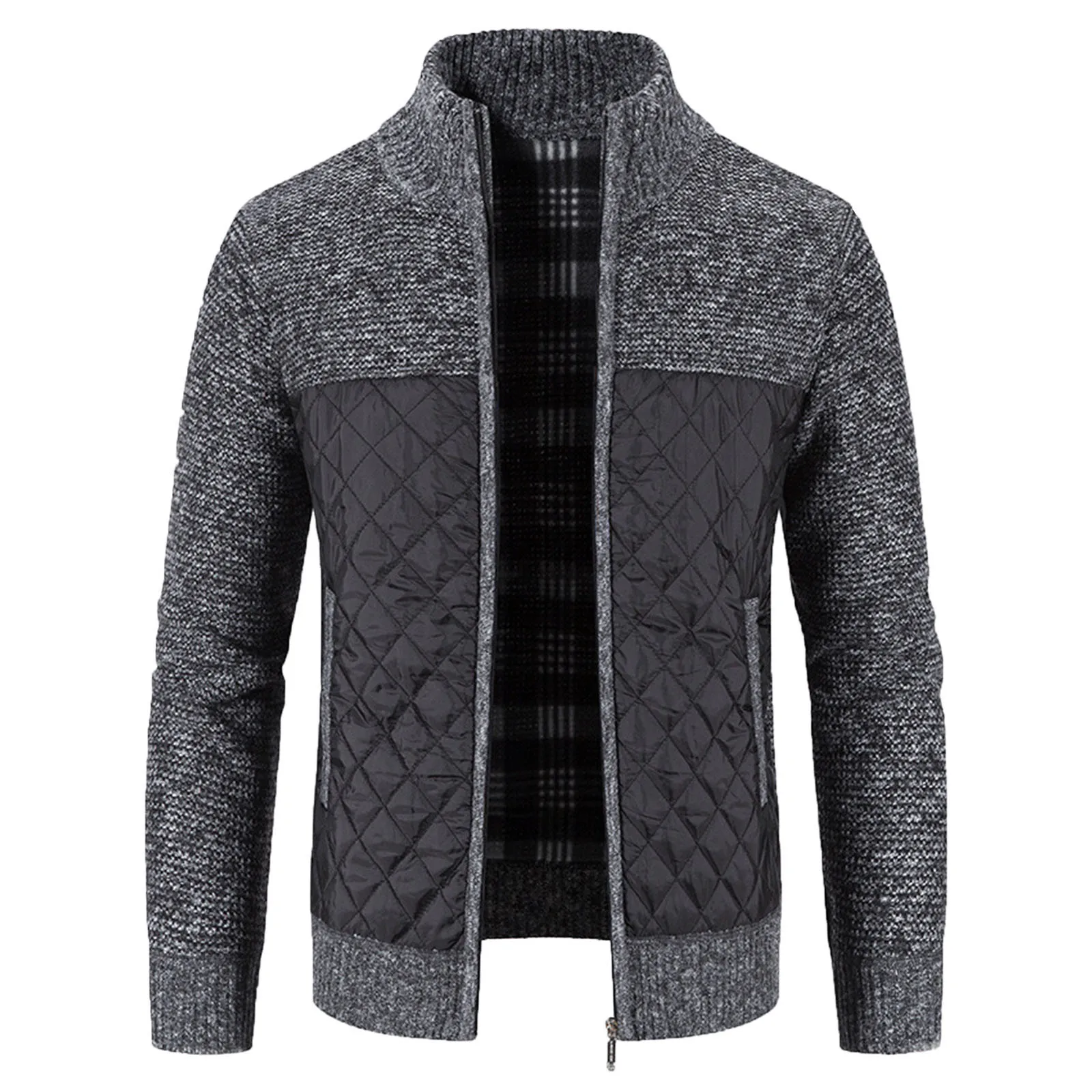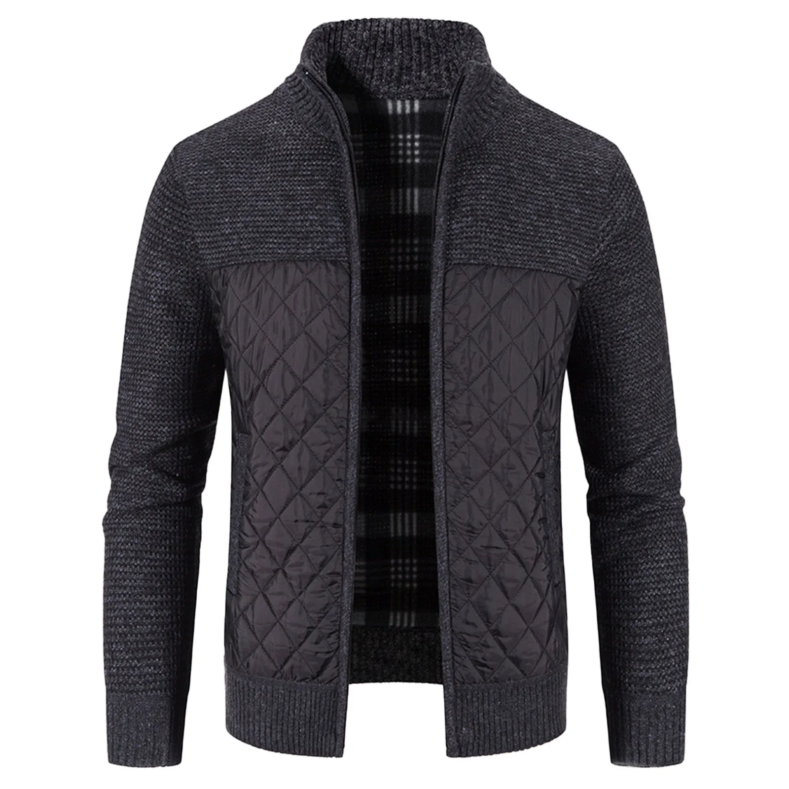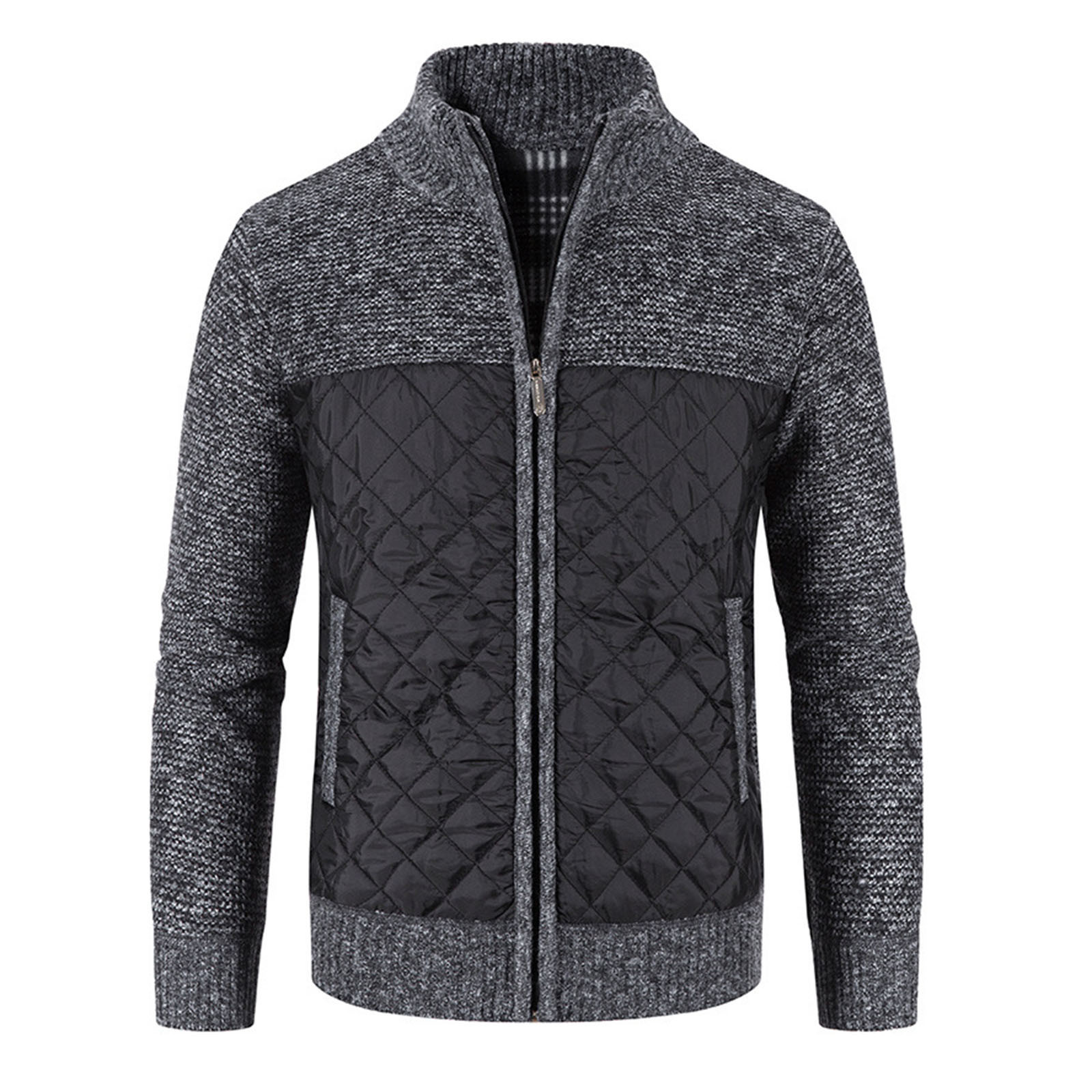 Мужской кардиган с хлопковой подкладкой, трикотажная куртка с вертикальным воротником