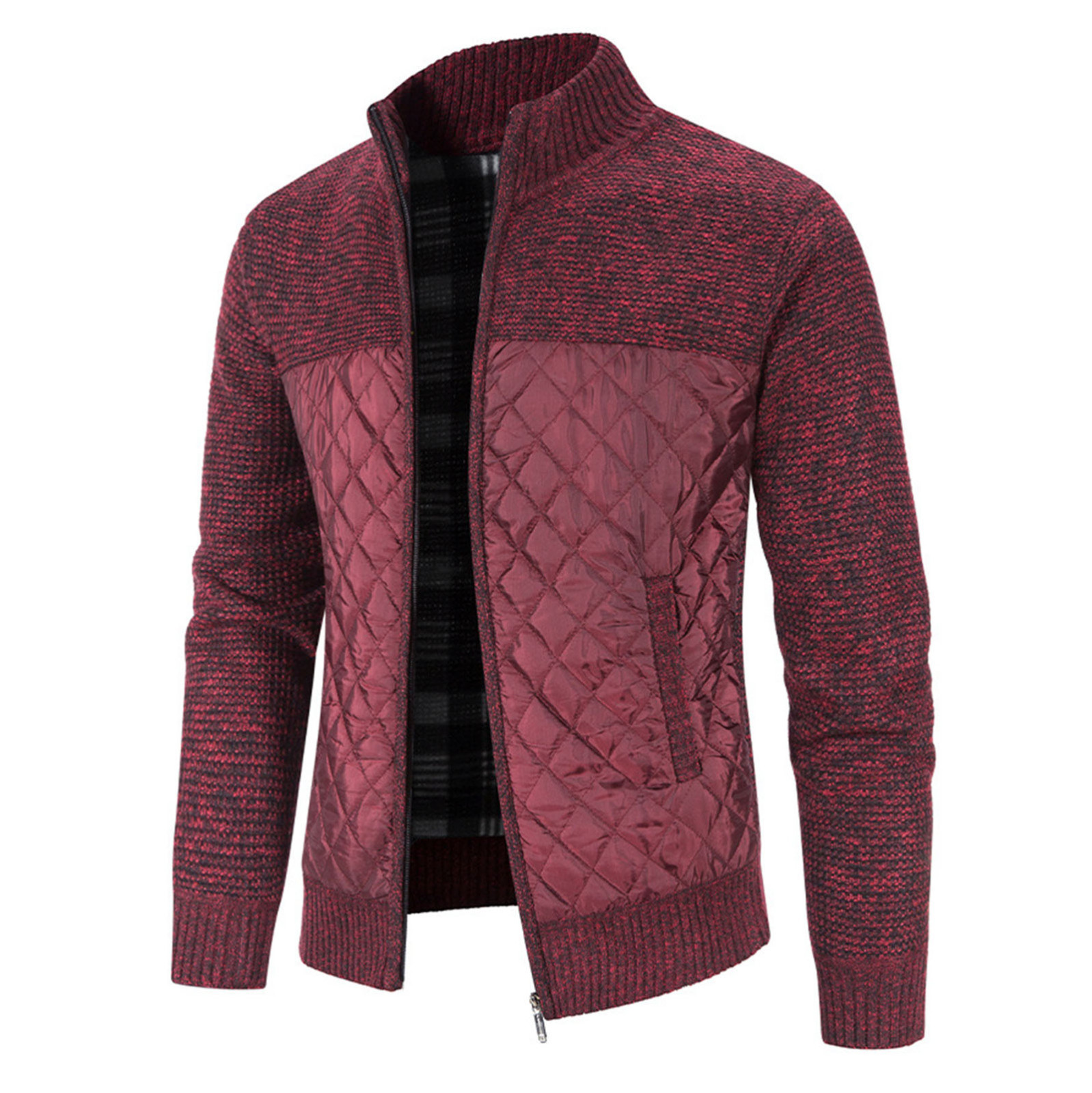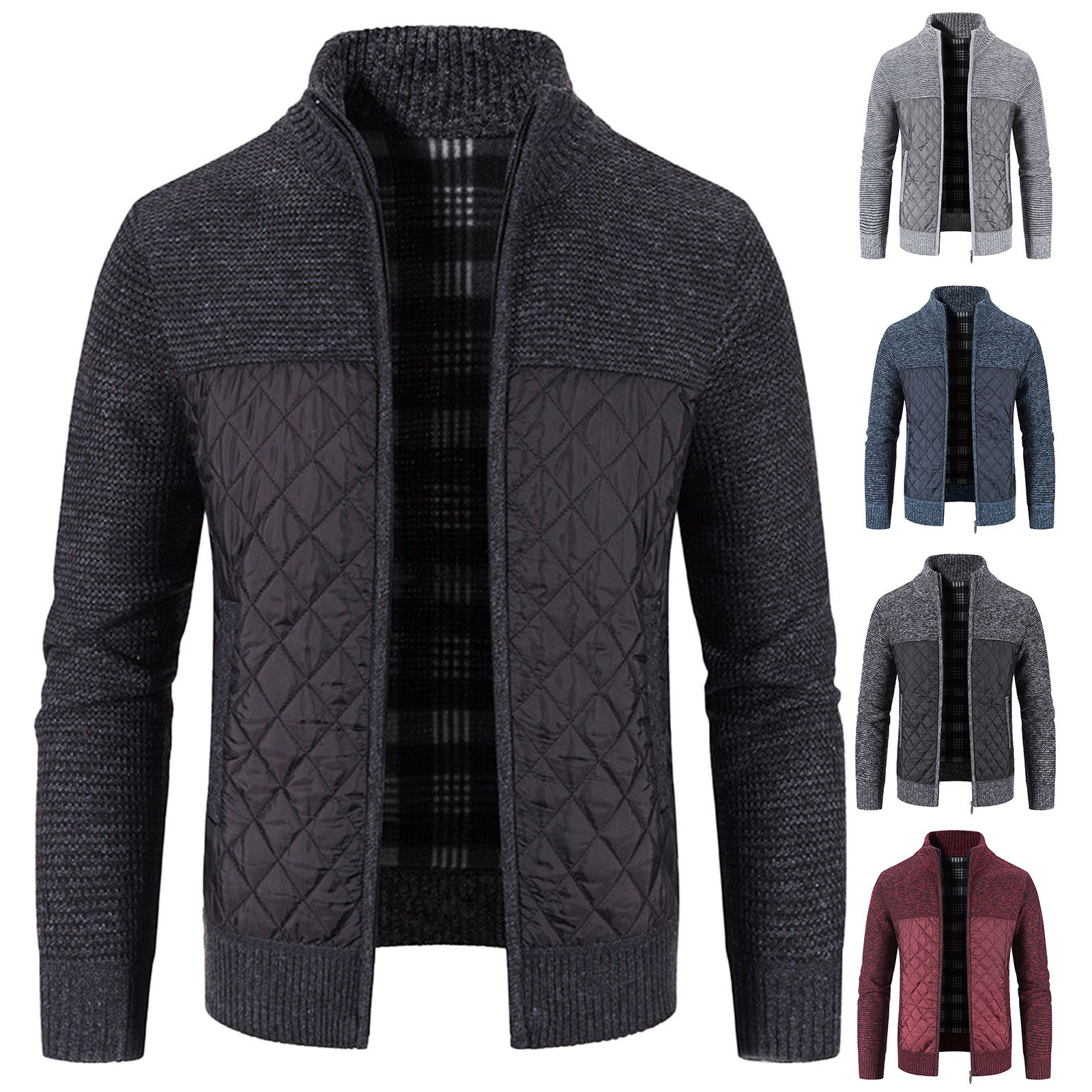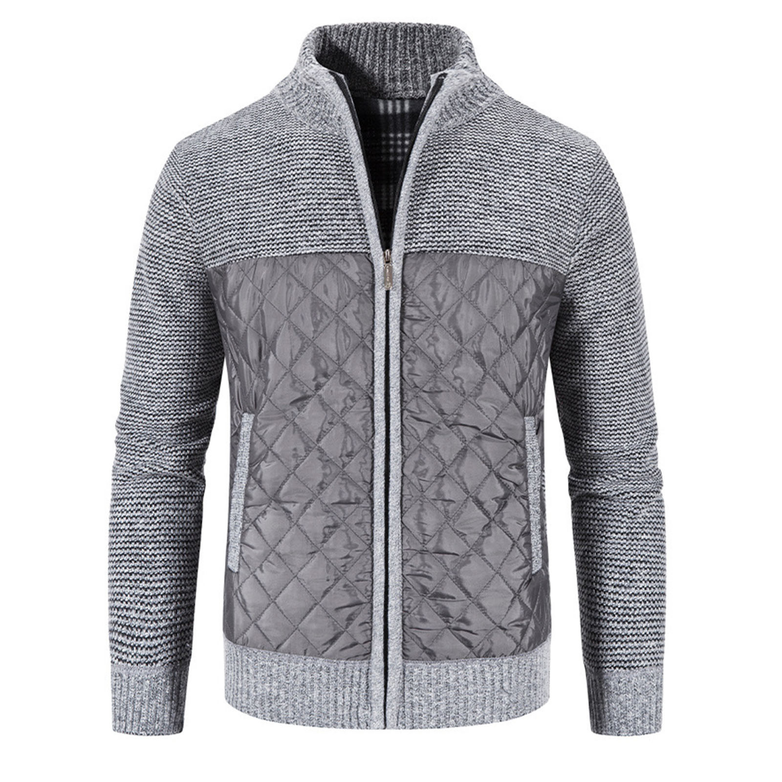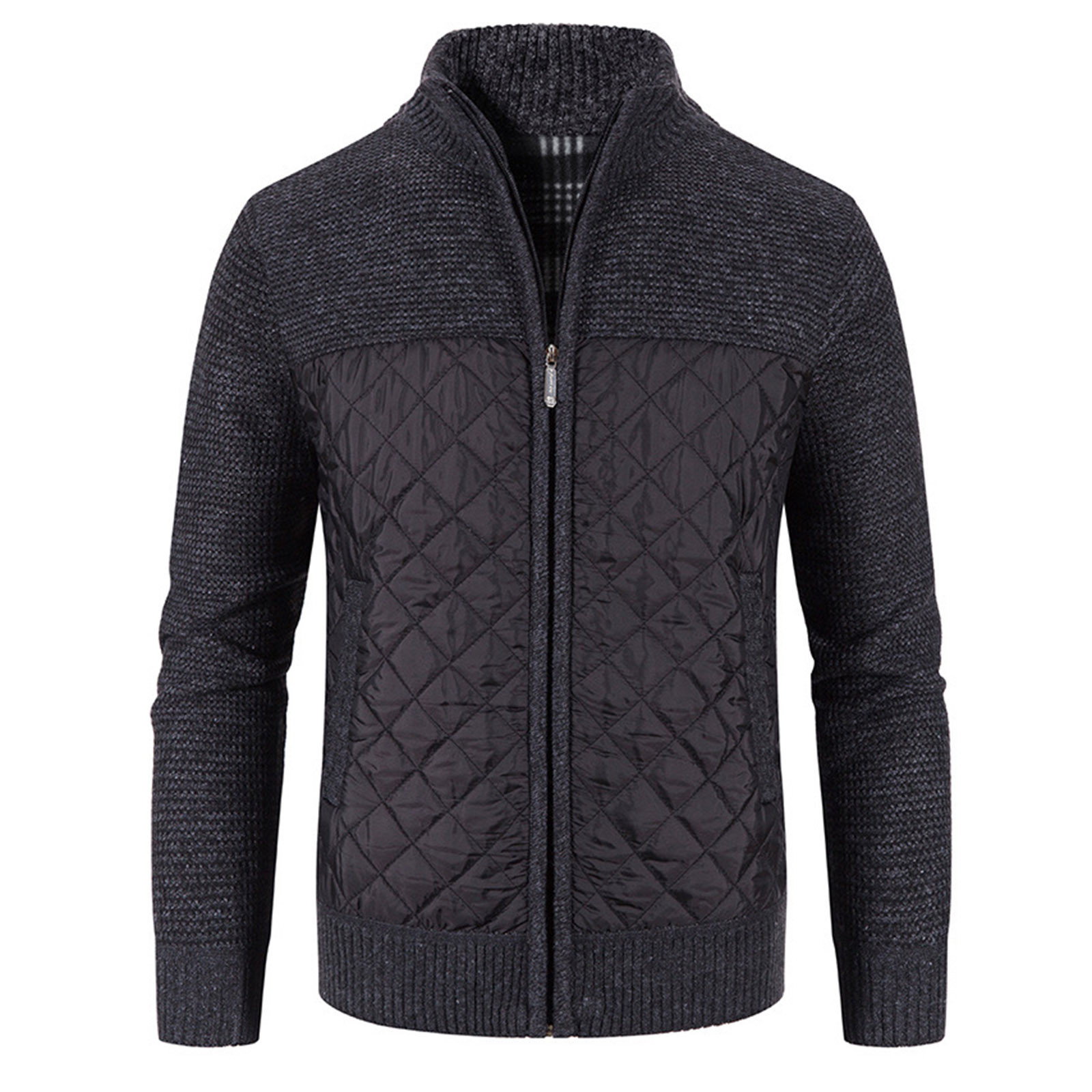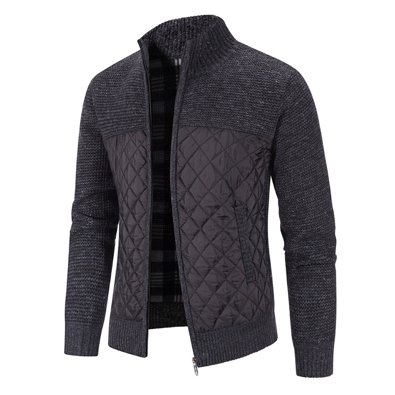 Мужской кардиган с хлопковой подкладкой, трикотажная куртка с вертикальным воротником