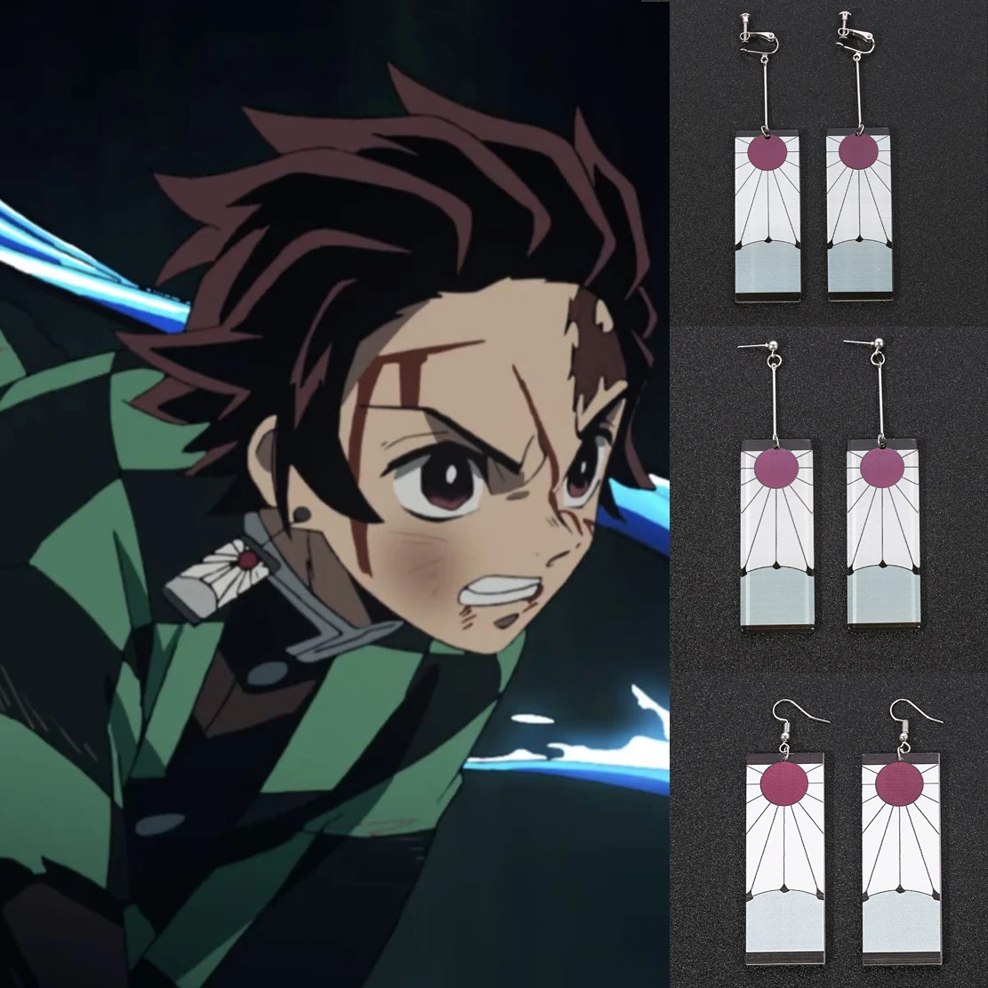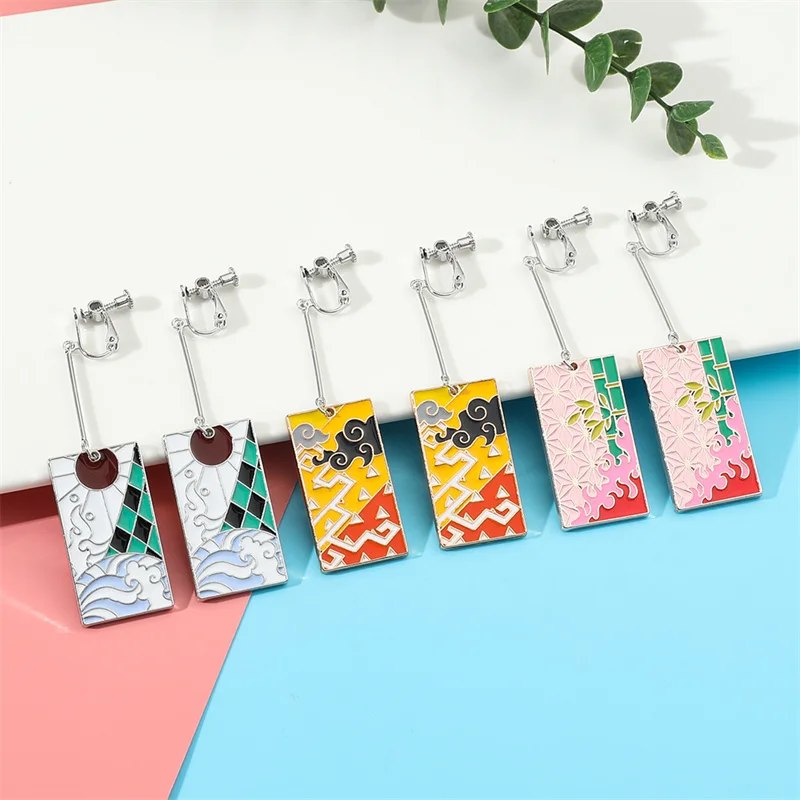 Аниме демон Slayer серьги кулон Kimetsu no Yaiba Kamado Tanjiro Косплей Аксессуары клипсы для ушей мужские и женские ювелирные изделия