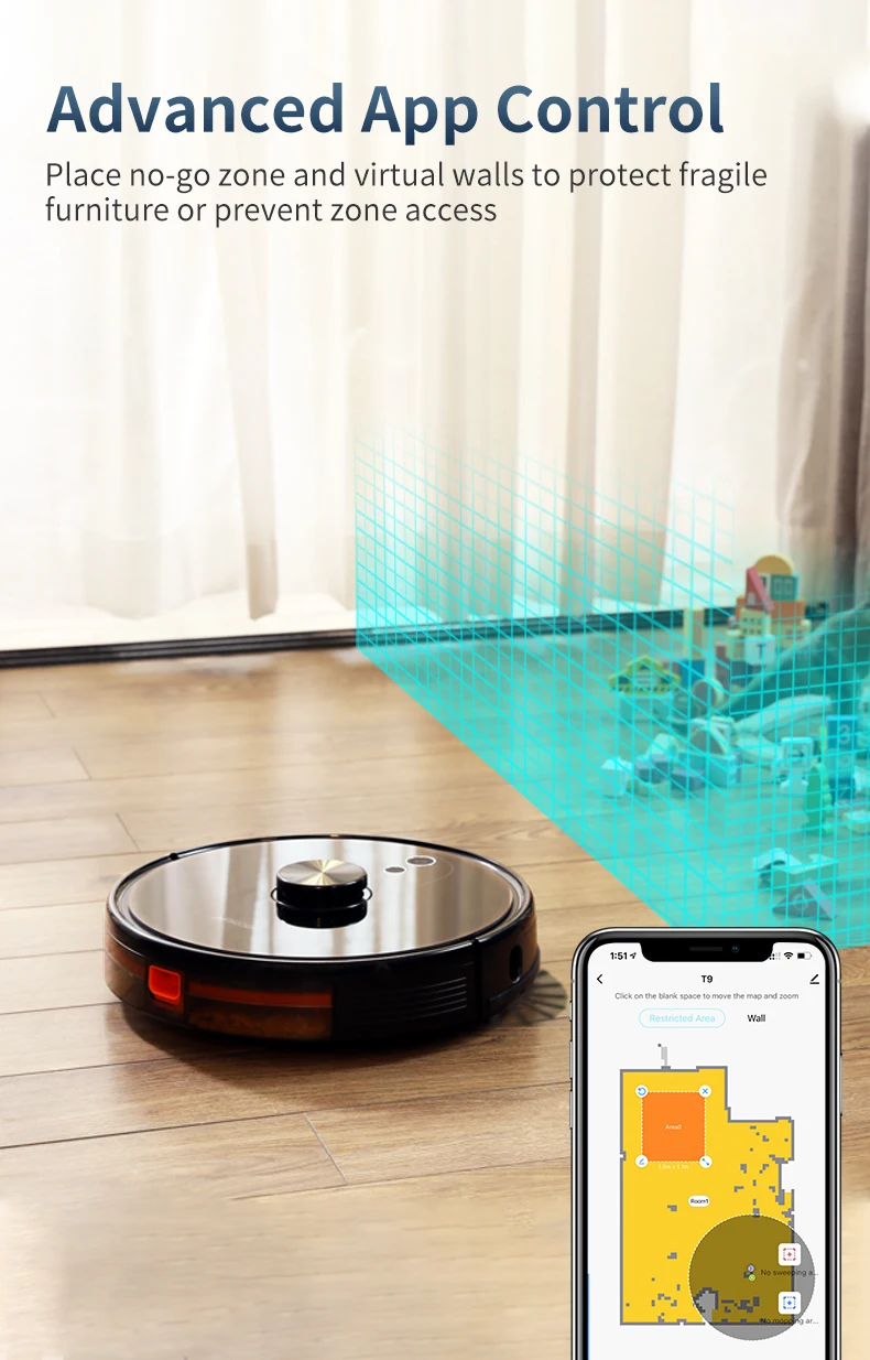 Высокоточная навигационная система lidar изучает и сопоставляет ваш дом, чтобы определить лучший способ очистки, в то время как очистка зигзага обеспечивает максимальное покрытие пола.
