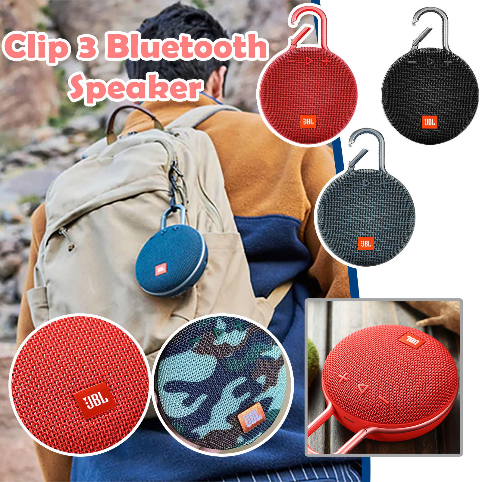 Отзывы о Jbl CLIP 3 Беспроводная Bluetooth-Колонка IPX7 Водонепроницаемая наружная Портативная