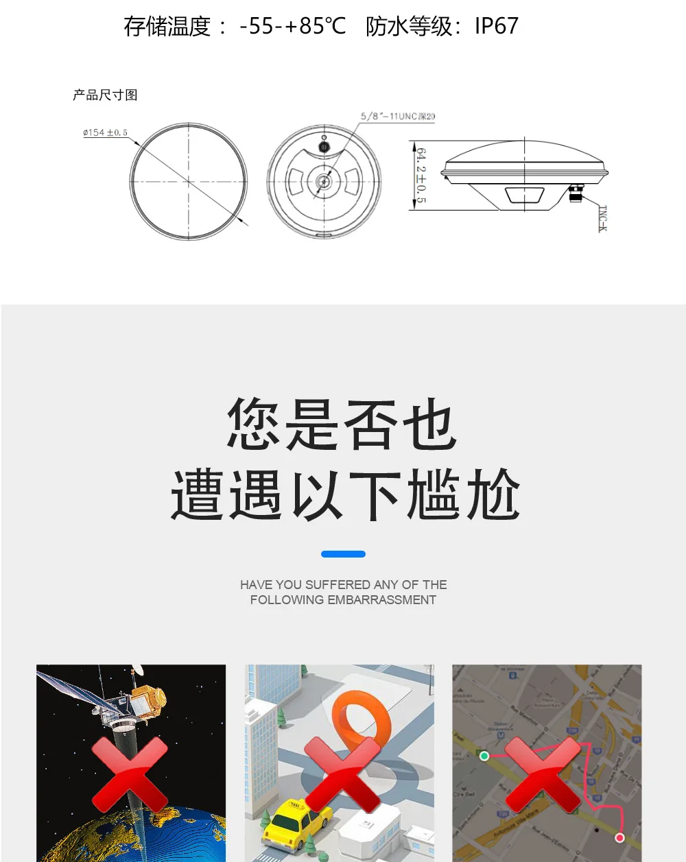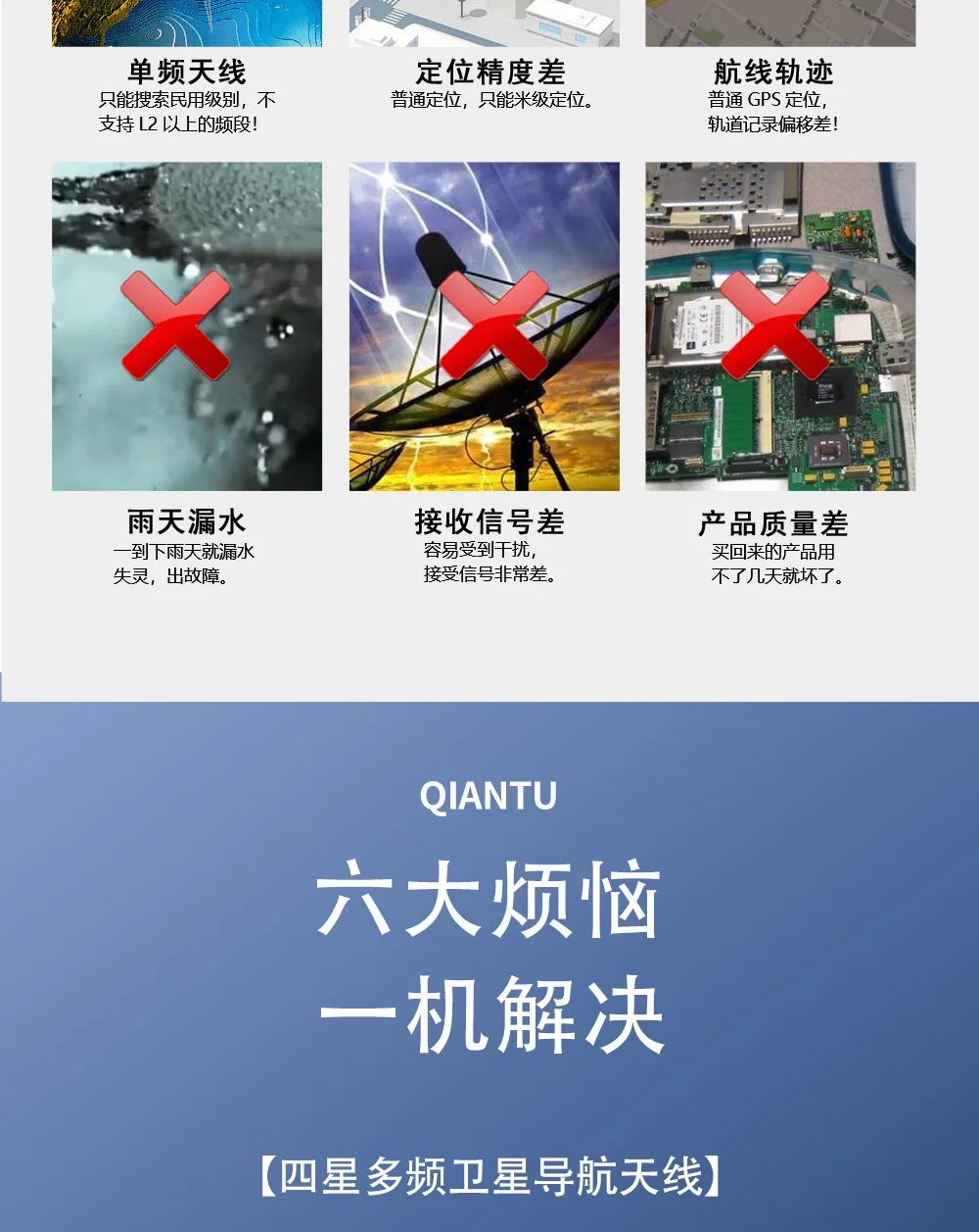 Эта антенна покрывает четырехзвездочную многочастотную внешнюю летающую антенну GPS L1/L2 GLONASS L1/L2 BDS B1/B2/B3 GALILEO E1/E5b, которая отвечает потребностям многосистемно совместимых и высокоточных пользователей современного оборудования для измерения ГНСС. Он широко используется в геодезической съемке, навигационной съемке, навигации, точного сельского хозяйства и морской геодезии. Он также может быть применен в военной области в соответствии с условиями применения.