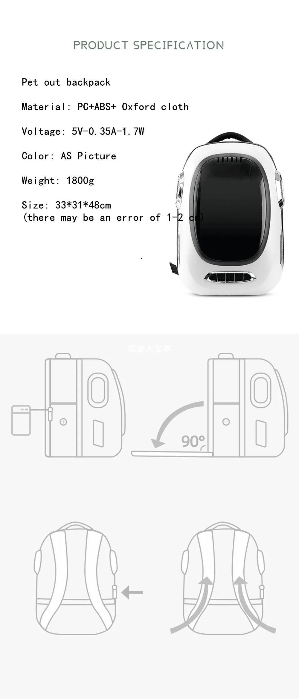 1. Этот рюкзак для домашних животных без внешнего аккумулятора, банк питания должен покупать отдельно.