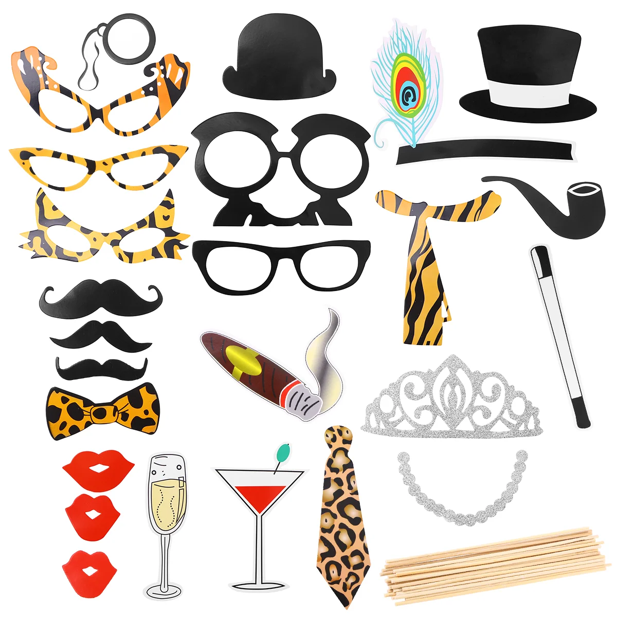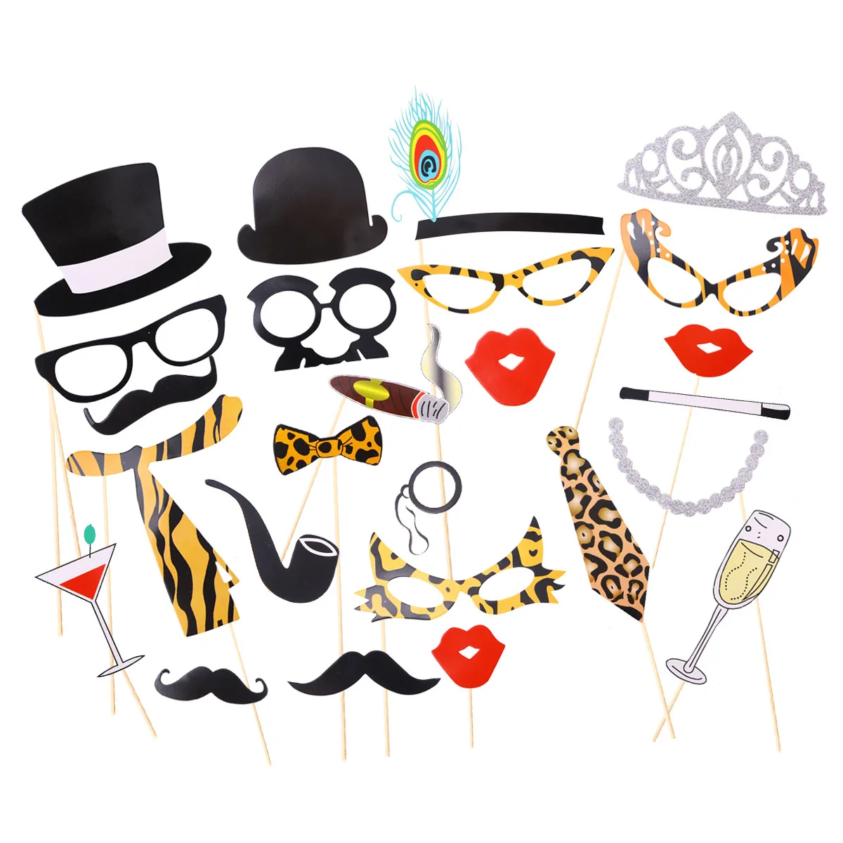 ОписаниеЭто набор фотографий, включая красные губы, шляпу, очки, галстук-бабочка, бороду и так далее. Яркий цвет и прекрасный дизайн выглядят радостно, вы получите больше удовольствия и незабываемый момент с этим забавным набор для фото. Леопардовый дизайн, более шикарный и модный. Идеально подходит для юбилея, дня рождения, свадьбы, вечерние, фестиваля и так далее.