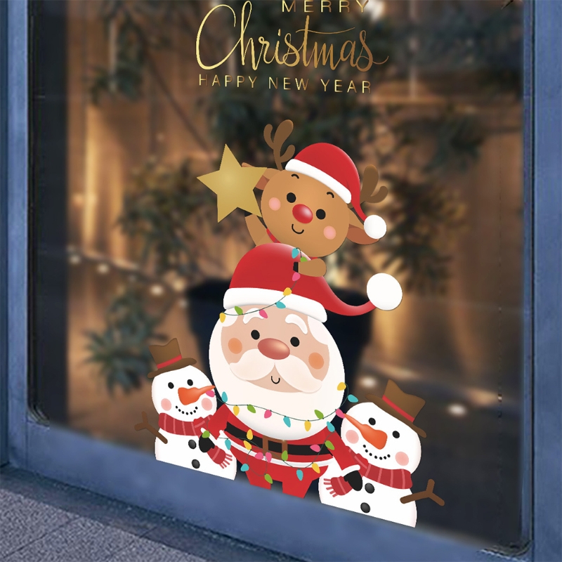 Милая Рождественская Наклейка на стену для маленьких детей, для гостиной, Рождественская елка, Санта-Клаус, наклейка на окно, стекло, статический ДекорOOTDTY