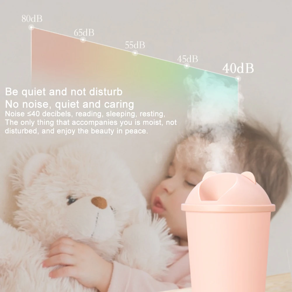 Увлажнитель, яркий градиентный свет, большая емкость 300 мл, два режима распыления, милый дизайн внешнего вида, бесшумная работа, защита от протечек, предотвращение сухого ожога, источник питания USB, компактный мини