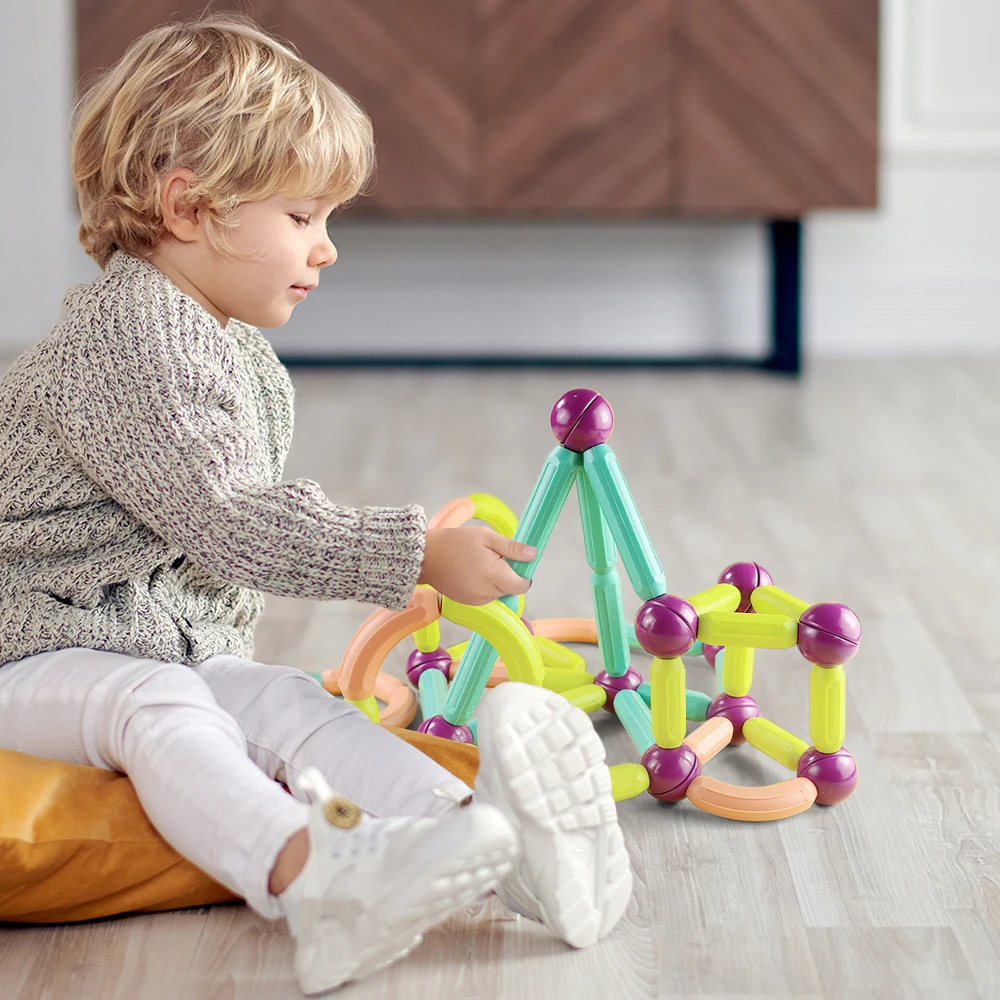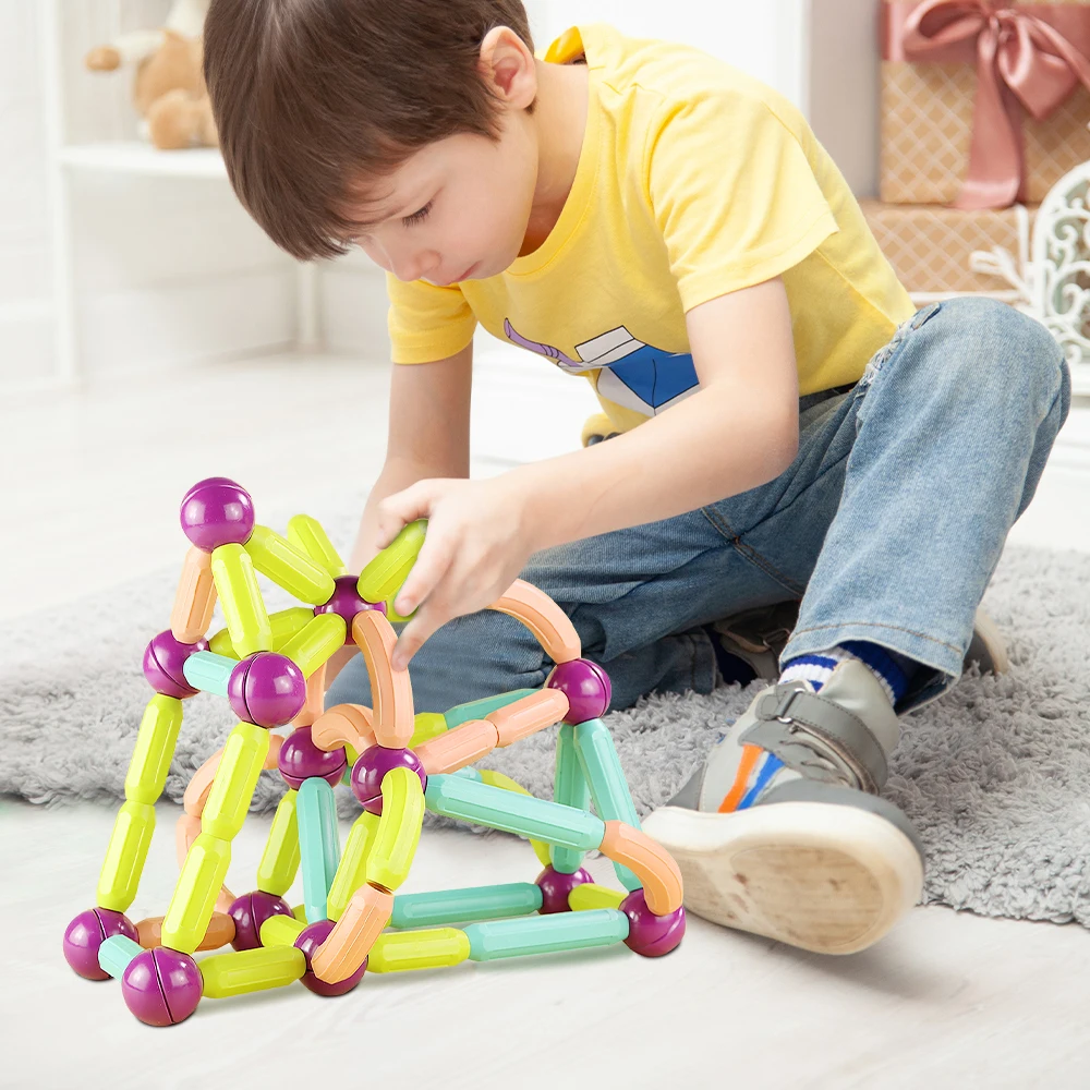 1. Магнитный строительный игрушечный набор может быть использован для открытия творческой игры для детей.