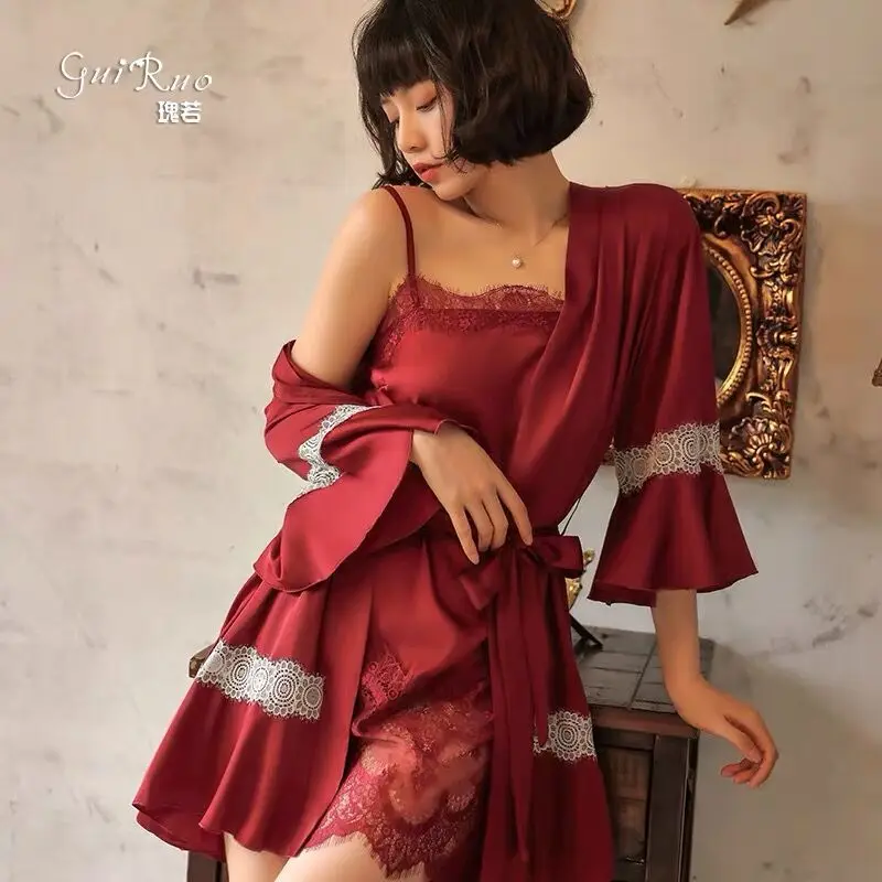Роскошный халат с вышивкой в Корейском стиле для женщин, Свадебный халат невесты, атласный короткий банный халат, одежда для сна