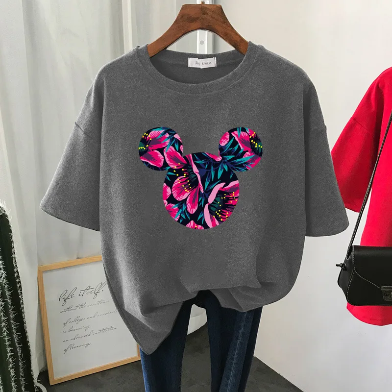 Отзывы о Disney Mickey T-shirt New Summer Fashion Women's Short Sleeves Loose Mid-Length Print All-Match Round Neck Blouse Bottoming Tide | Мать и