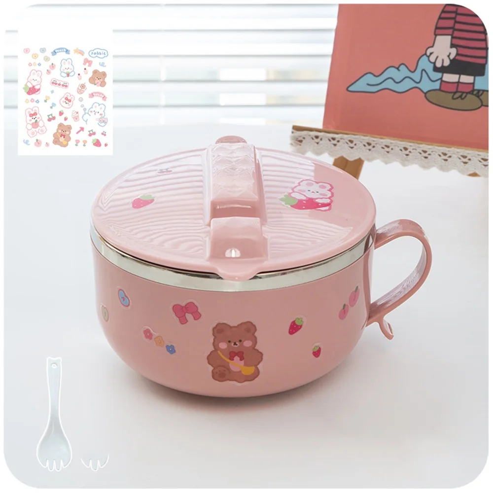 Японский Kawaii Ланч-бокс, Набор чашек, чаша для лапши с крышкой, 304, нержавеющая сталь, Bento Box, Ланч-бокс