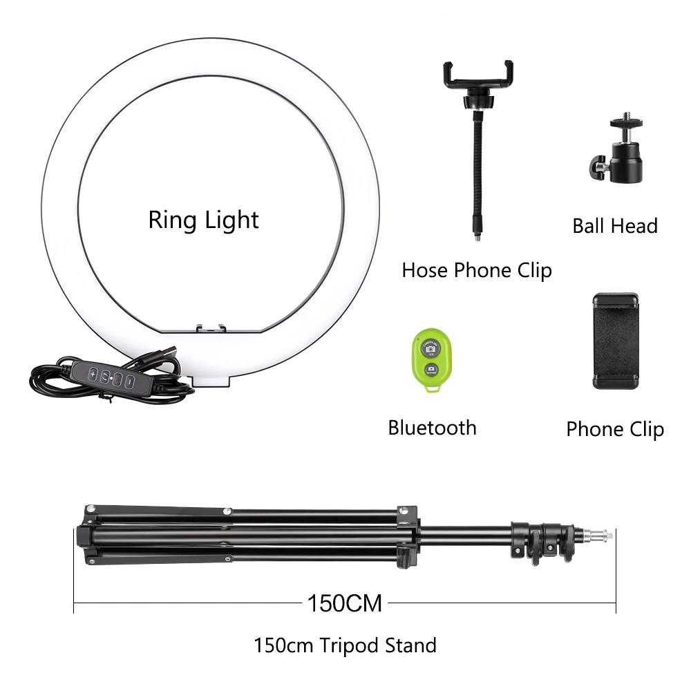 10 дюймов кольцевой светильник: с регулируемой яркостью и регулируется, вы можете отрегулировать светильник влияние от 10%-100%. Кольцевой светильник для селфи делает вас более привлекательным и очаровательным.