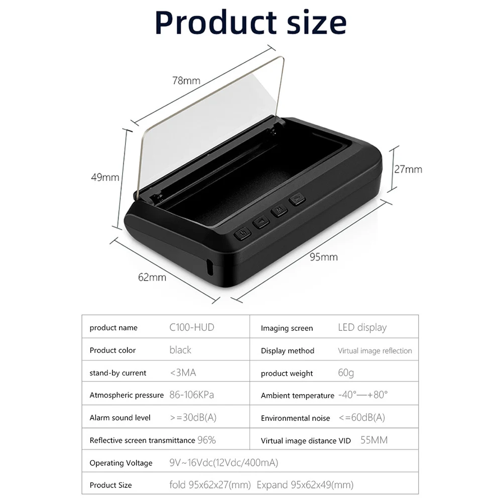 Автоматическое включение/выключение: HUD запуск и выключение автомобиля, эффективная защита автомобильного аккумулятора; Сохранение режима ручного переключения, более легкое управление HUD.