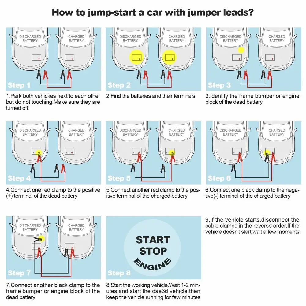 Высококачественный медно-алюминиевый кабель с максимальной проводимостью. Пусковой кабель длиной 2 м может обеспечить простое устранение неполадок.