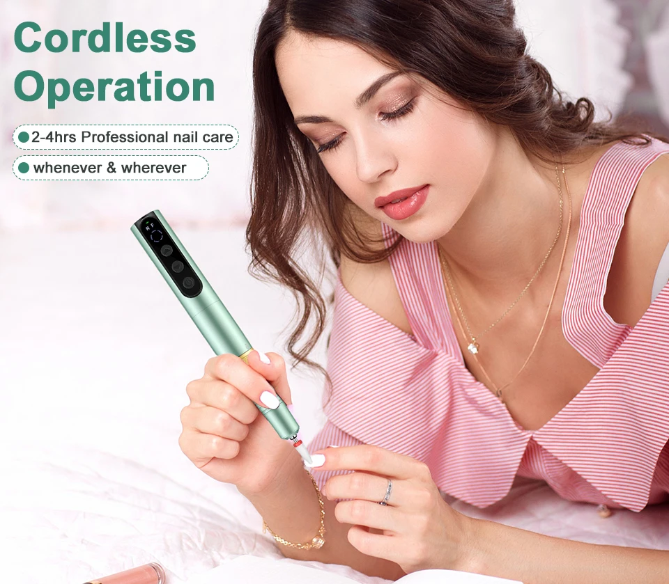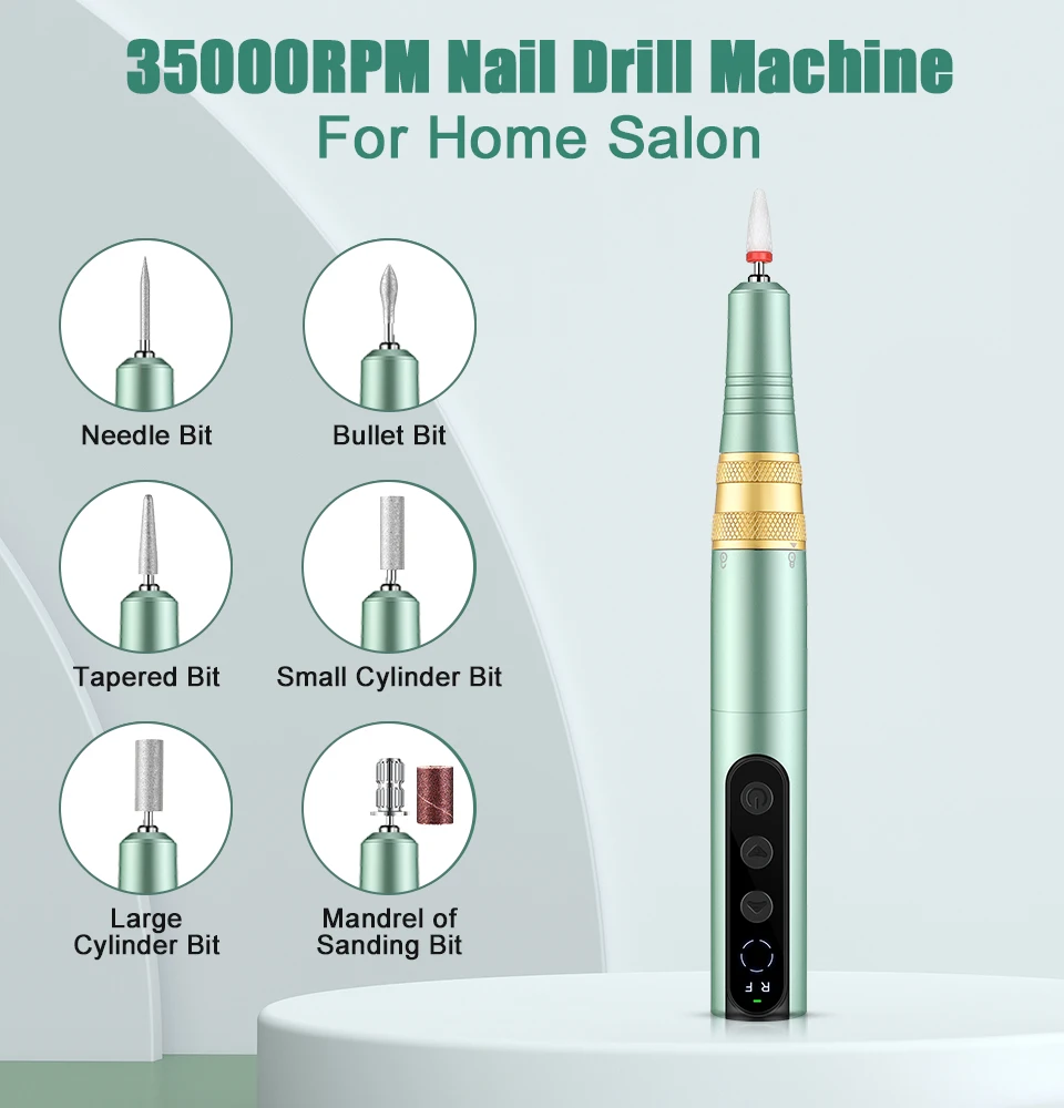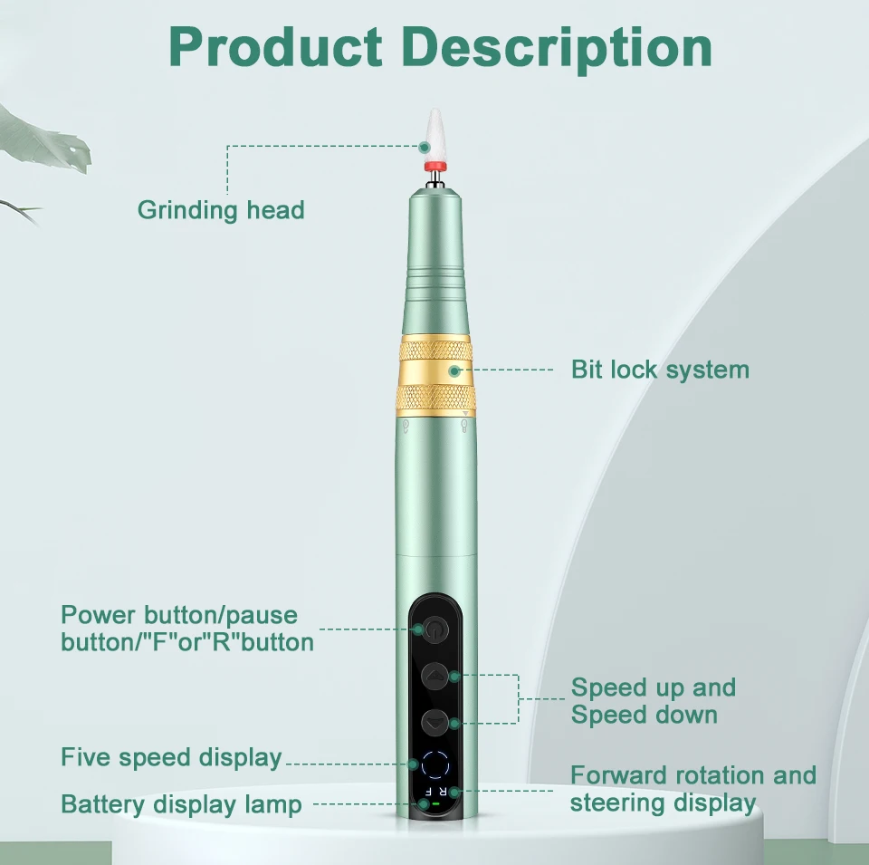 Обновленный двигатель:Пять дополнительных скоростных комплектов (макс. 35000 об/мин) для дизайна ногтей с низким нагревом, низким уровнем шума, повышенной работоспособностью и управляемостью. Сделайте свой ноготь гладко и наслаждайтесь низкой вибрацией.