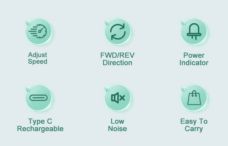 Быстрая зарядка и легкий вес:Он будет полностью заряжен всего за 40-60 минут с помощью зарядного шнура и работать до 4 часов. Он легкий с сумкой для хранения, его легко упаковать с Вашими вещами для путешествий или простых повседневных поездок.