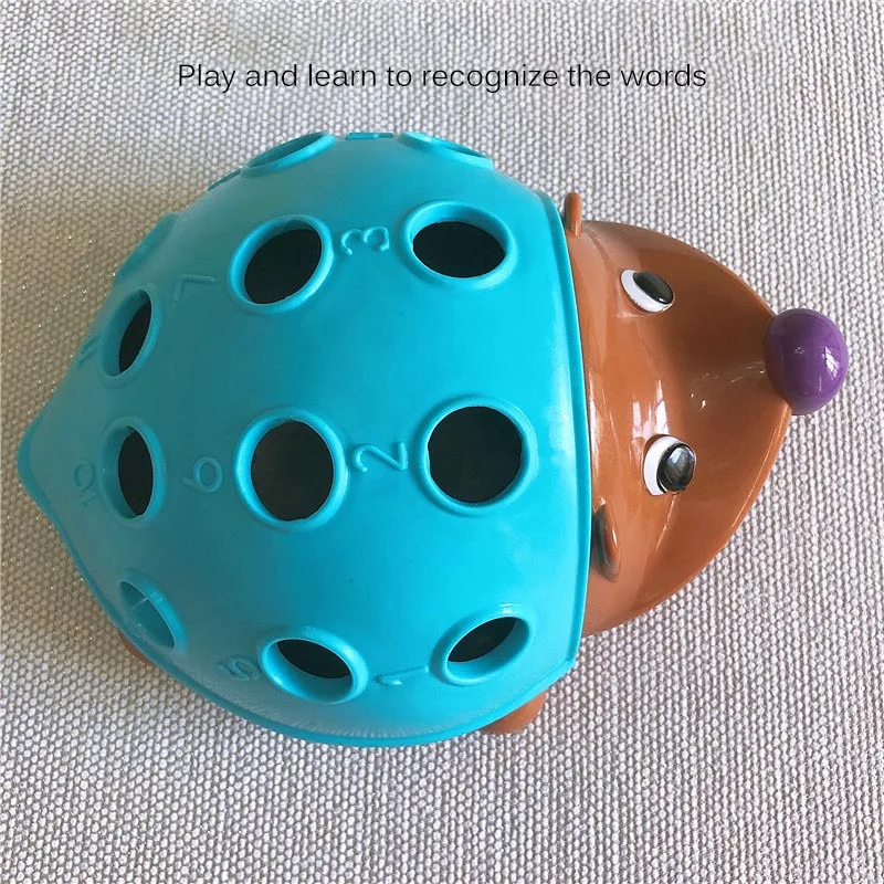 Спинка Ежика выгравирована цифрами, что позволяет детям учиться во время игры и развивать свои математические способности мышления.