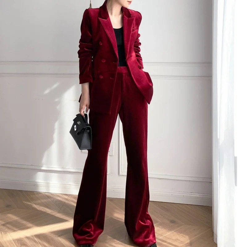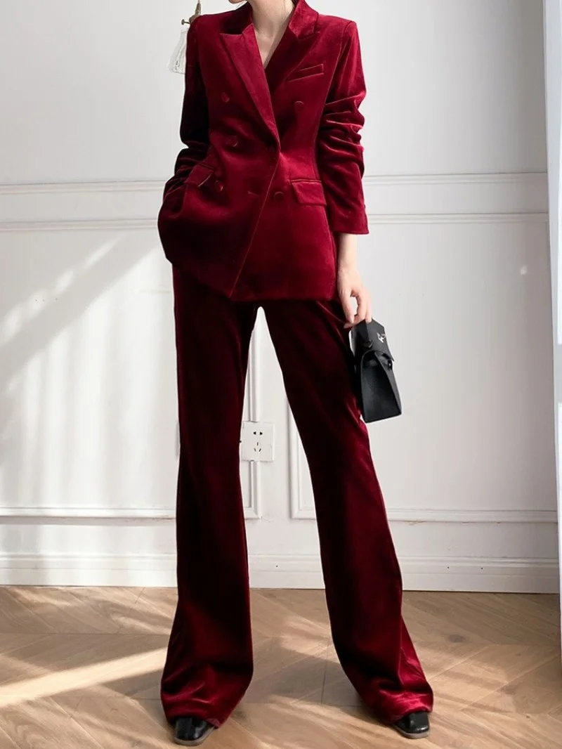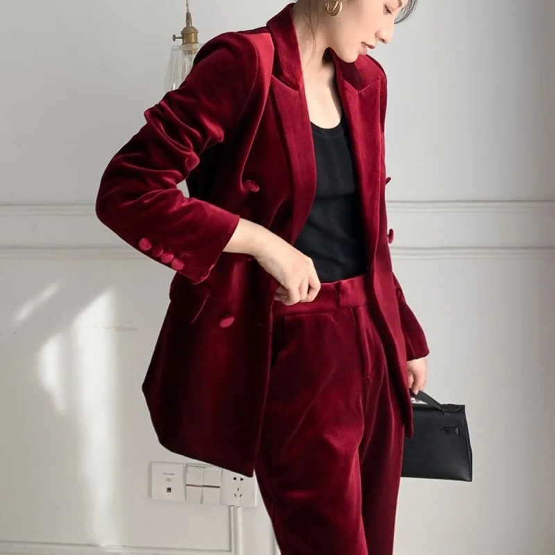 Отзывы о Женский офисный костюм из двух предметов элегантный красный бархатный