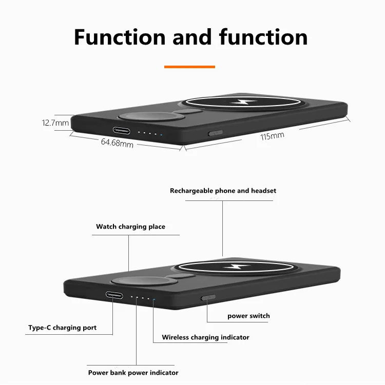 Портативный магнитный внешний аккумулятор мобильный телефон зарядное устройство для iPhone 13 12 Xiaomi Apple iWatch Беспроводной внешний аккумулятор Powerbank