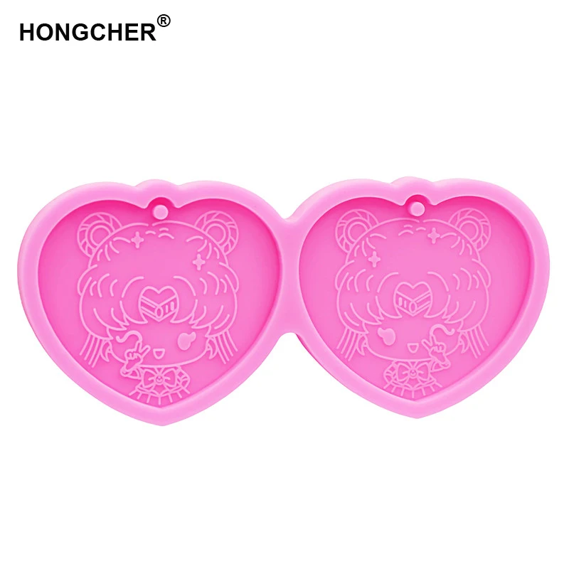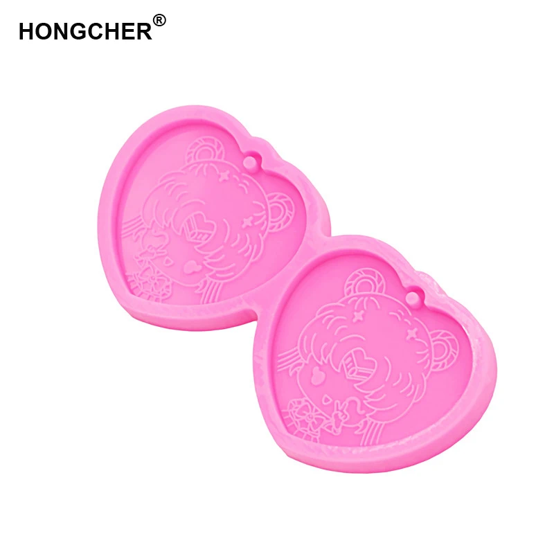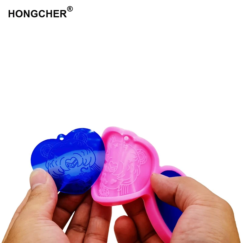 Title:Girl Shiny keychain silicone mold Painting Anime Shaker Silicone Mold Jewellery Making Polymer Clay Epoxy Resin Mold