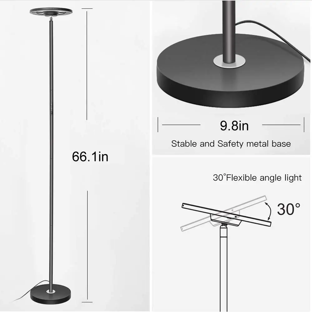 【Современный стиль с регулируемой яркостью угловой светильник Современный тонкий напольный светильник незаметно скользит в узкие углы и основание подходит под большинство диванов, кресел и стульев для чтения. Этот светильник-столб обеспечивает теплый светильник в помещении, не занимая много места, и головку можно легко поворачивать, чтобы светить в любом направлении.