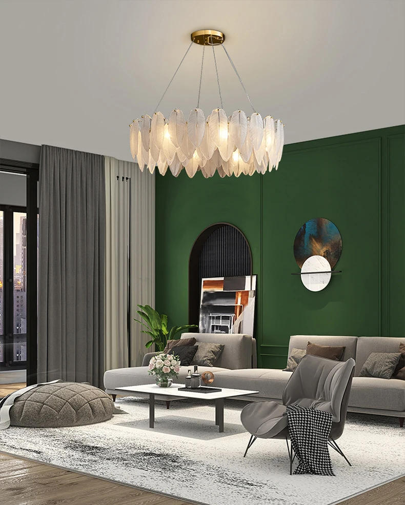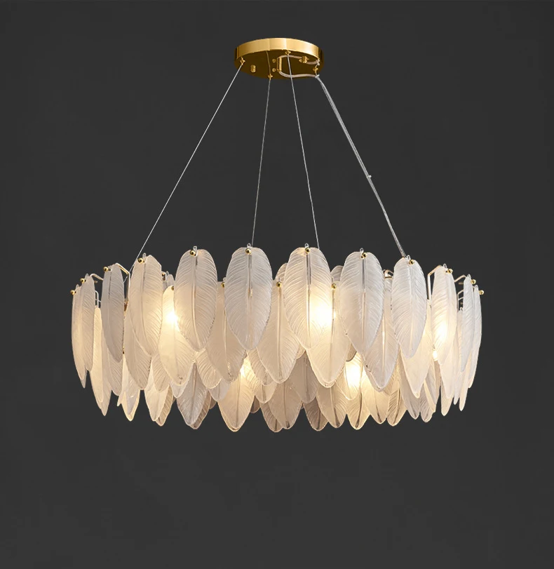 Светодиодный светильник в стиле арт-деко из современного белого стекла с гусиным пером, дизайнерская люстра с люстрами, подвесной светильник для фойе