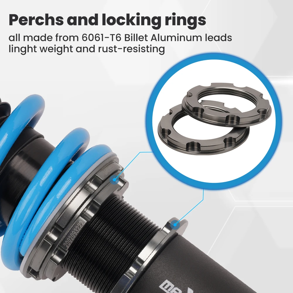 2. 24 уровня регулировки демпфирования позволяет вам идеально набрать циферблат в настройке coilover. Вы почувствуете лучшее качество езды во всех дорожных условиях.