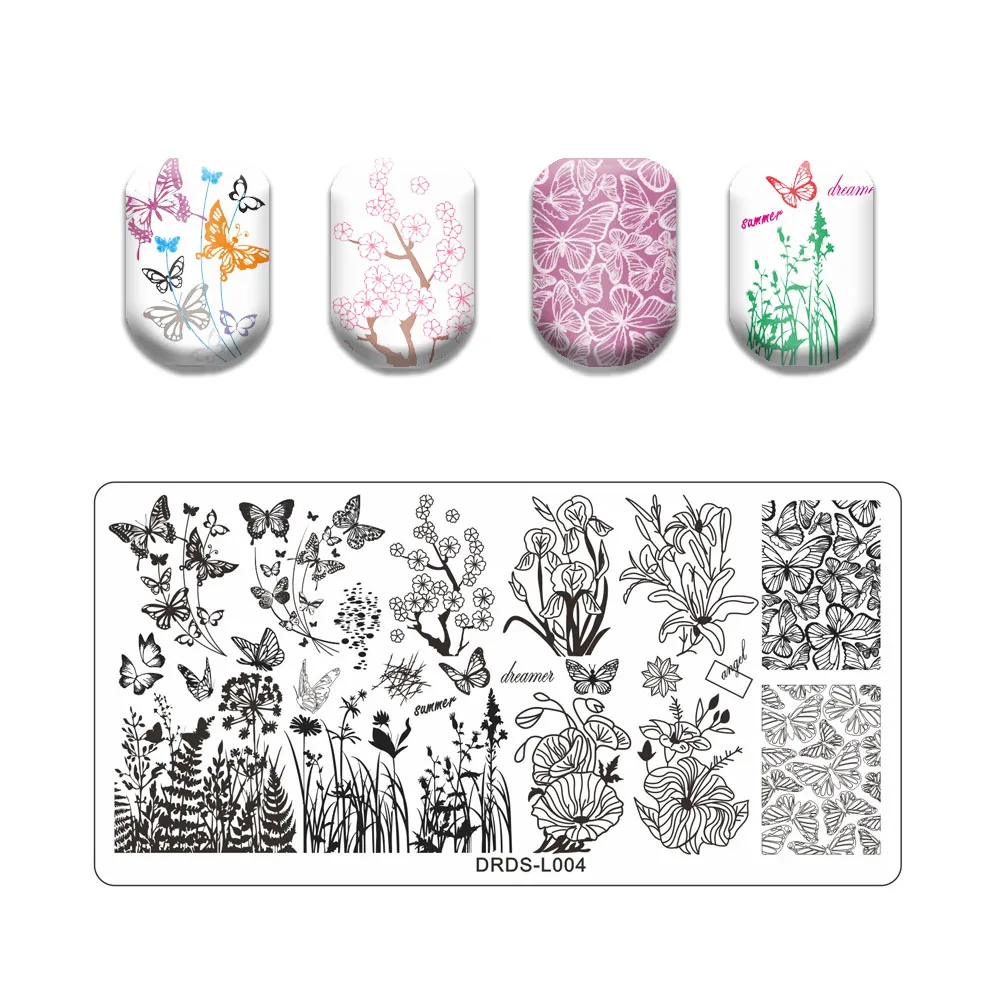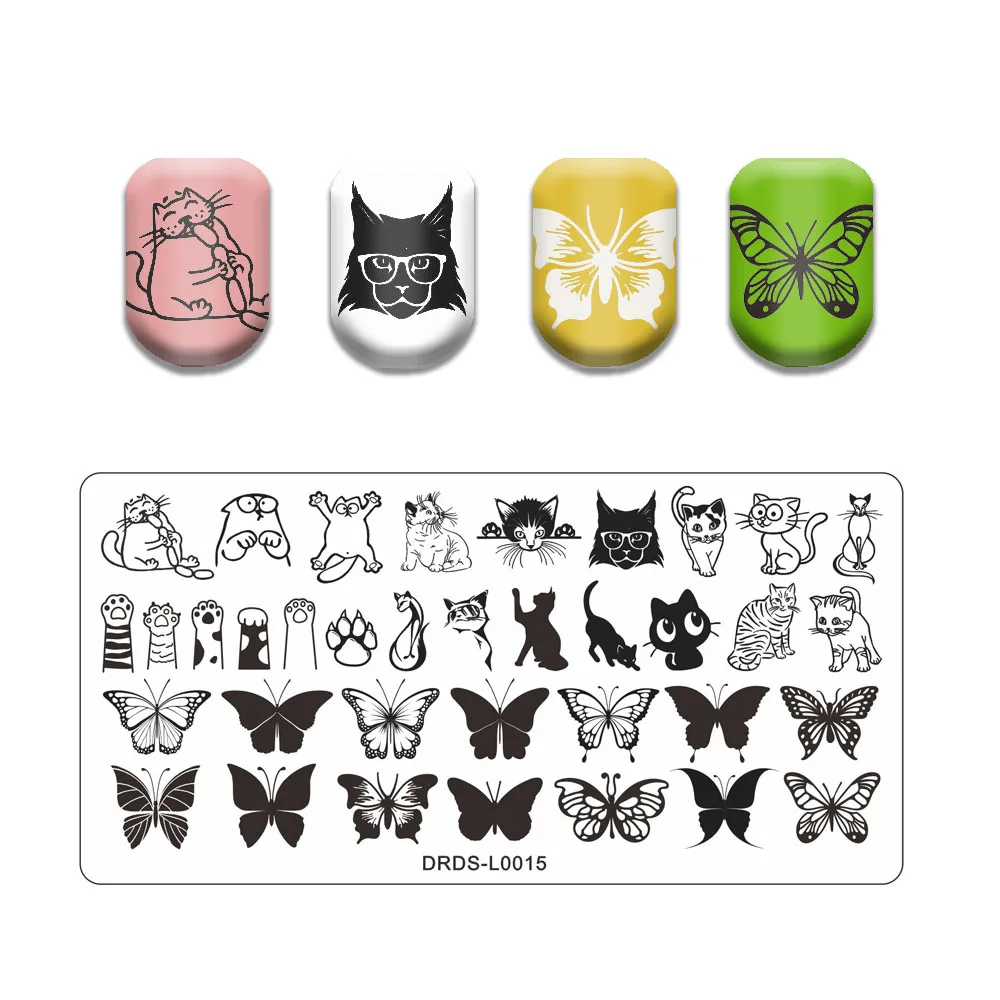 Рисунок кошки штамповки пластины лист бабочка шаблон печати изображения из нержавеющей стали дизайн ногтей штамп инструменты кружева цветок печать