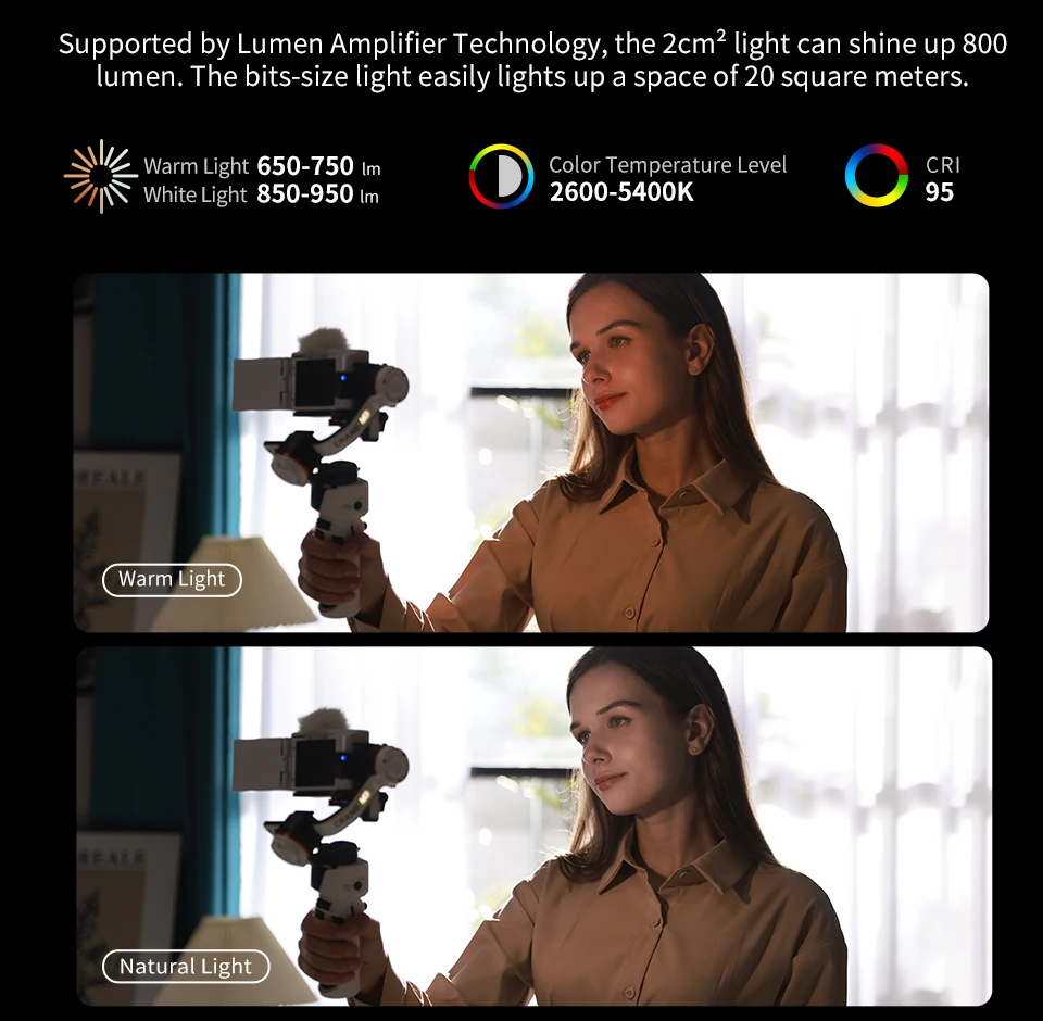 Новаторский Встроенный светодиодный светильник с технологией усилителя люмена для снижения уровня шума изображения. Съемка в темноте или тусклый светильник поддерживается регулируемой цветовой температурой и яркостью, которая заостряет изображение.