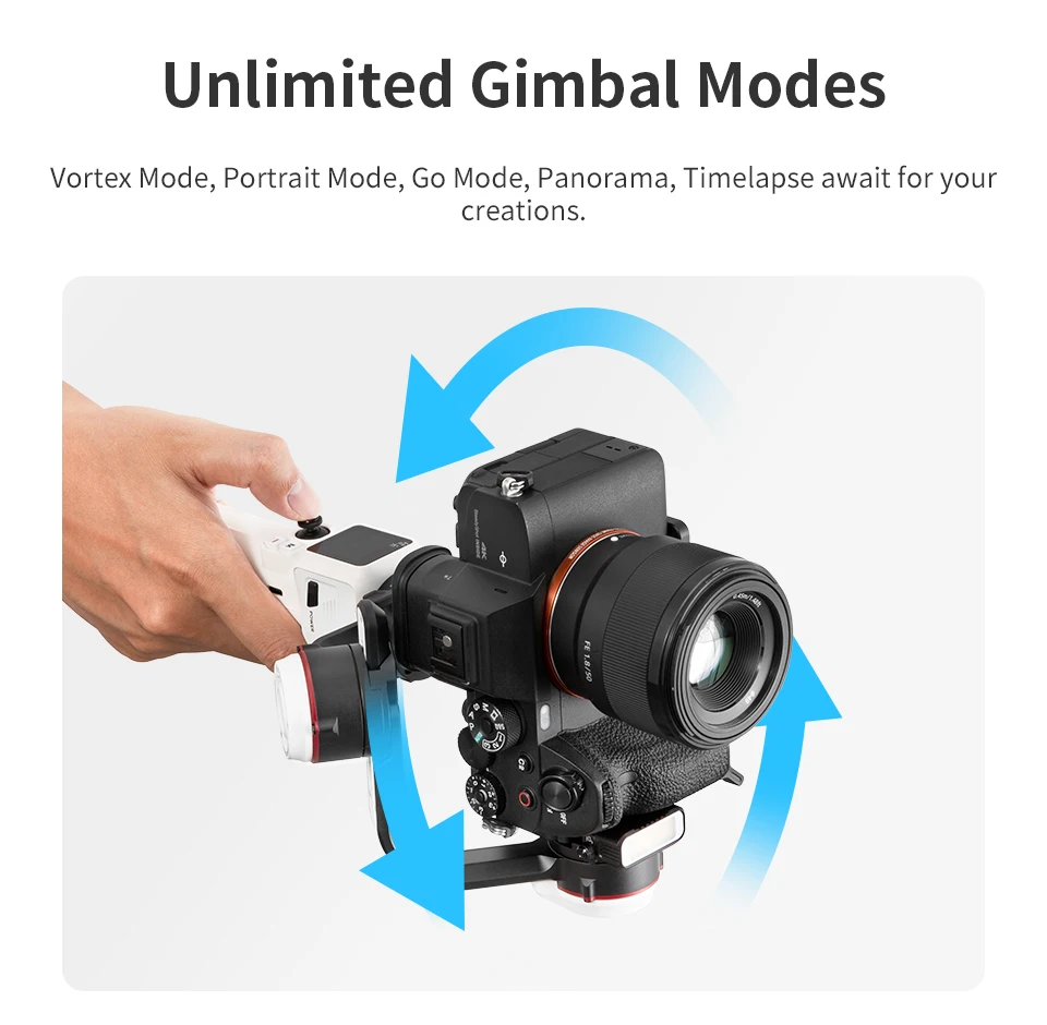 Избавьтесь от высокого тела, Zhiyun Crane M3 такой же крошечный, как бутылка воды. Но модернизированные двигатели с сильным крутящим моментом гарантируют стабильное движение и съемку с камерами разных размеров.