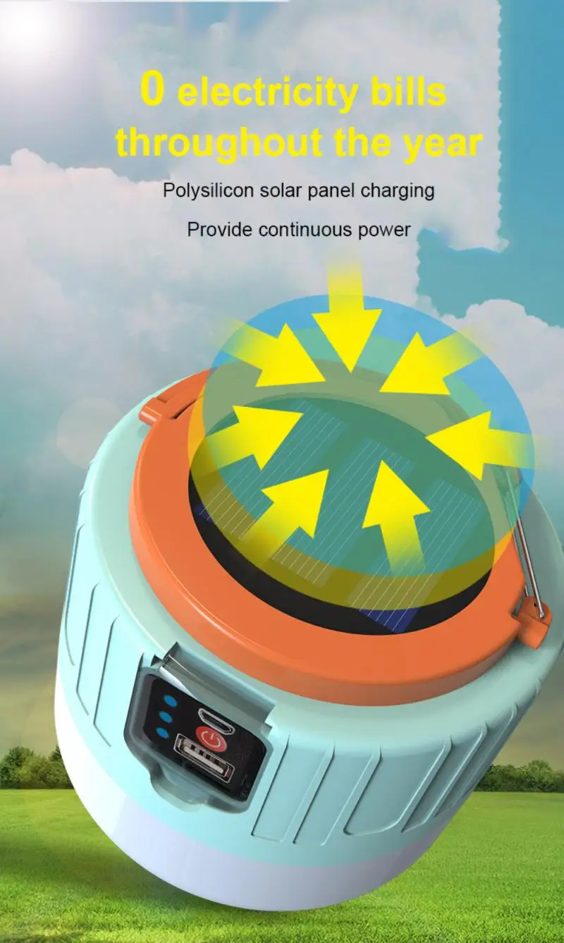 6. Зарядка солнечной энергии, нулевая зарядка электричества, отлично! Простота в применении: светодиодный светильник на солнечной батарее легко переносится и может переноситься с собой без аккумулятора
