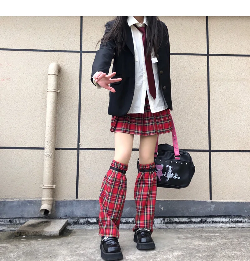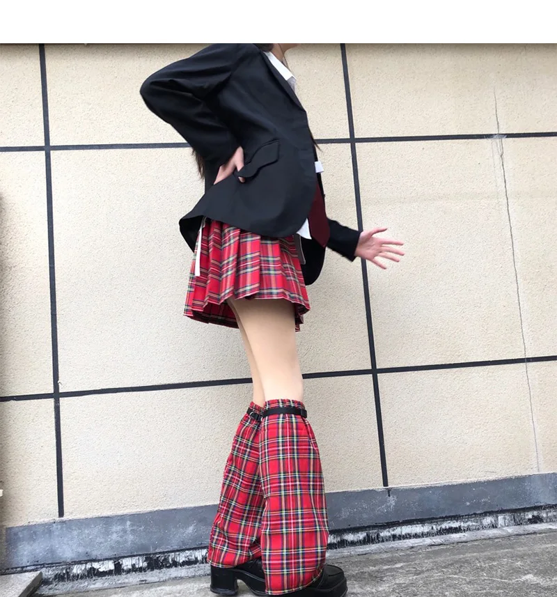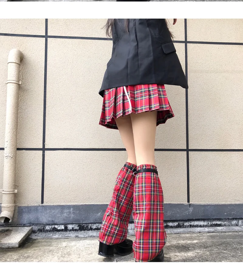 Отзывы о Japanese Harajuku Girls Y2K ремень Красный Клетчатый грелка для ног женские регулируемые