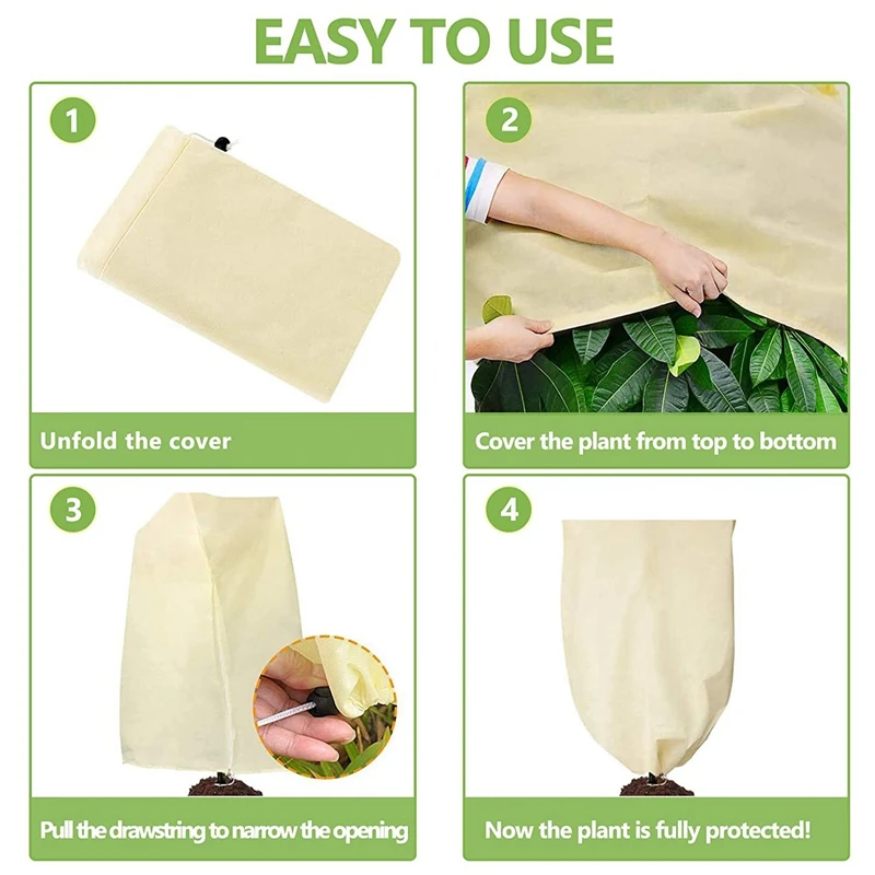 [Уверенный дизайн] Легкий шнурок на отверстии делает его проще и быстрее покрывать растения во время суровой погоды. Это поможет растениям поддерживать температуру и не будет выдуваться в ветреную погоду.