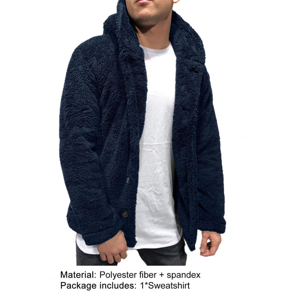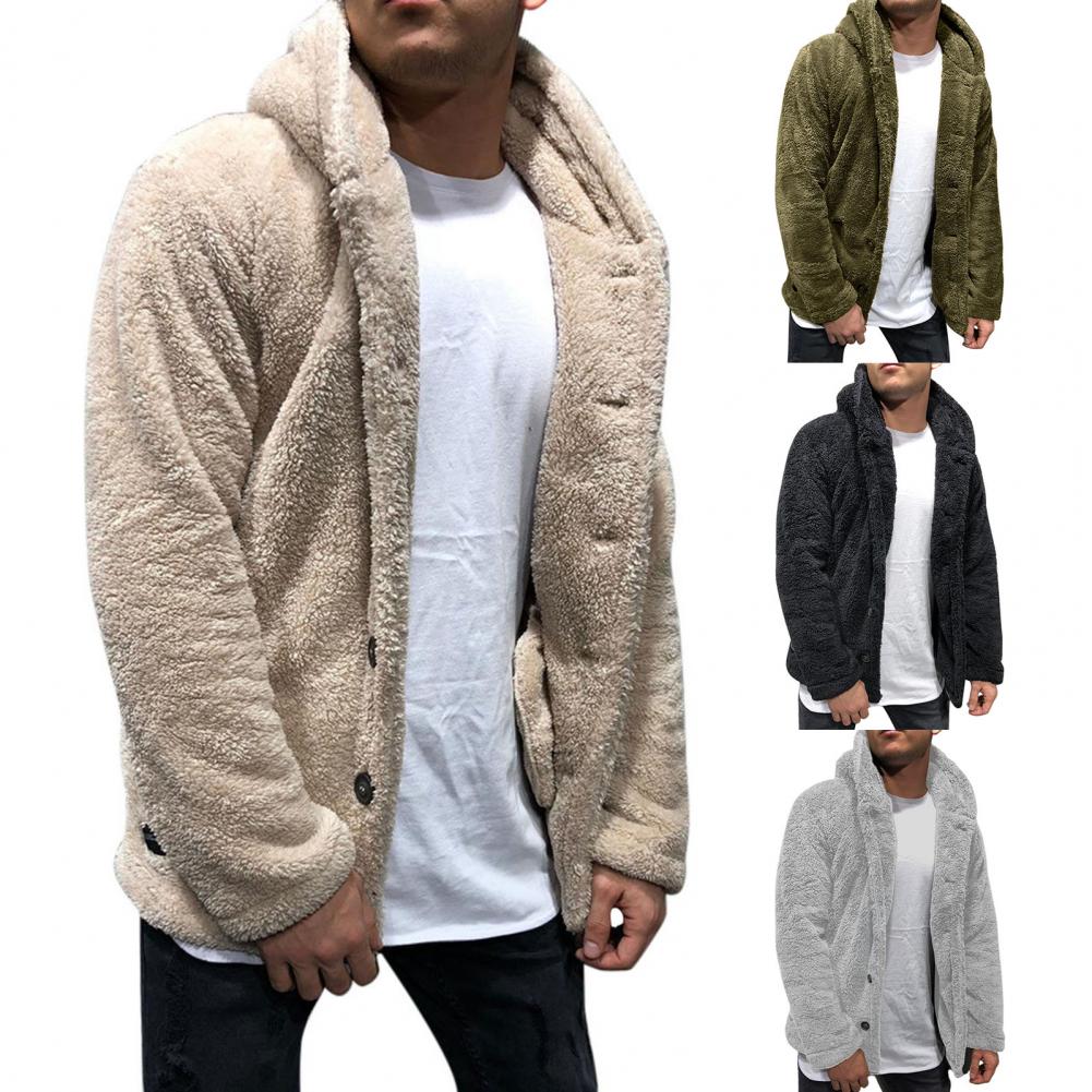 Пушистое флисовое пальто с длинным рукавом и капюшоном, плюшевая застежка на пуговицах, утепленное теплое Мужское пальто, верхняя одежда
