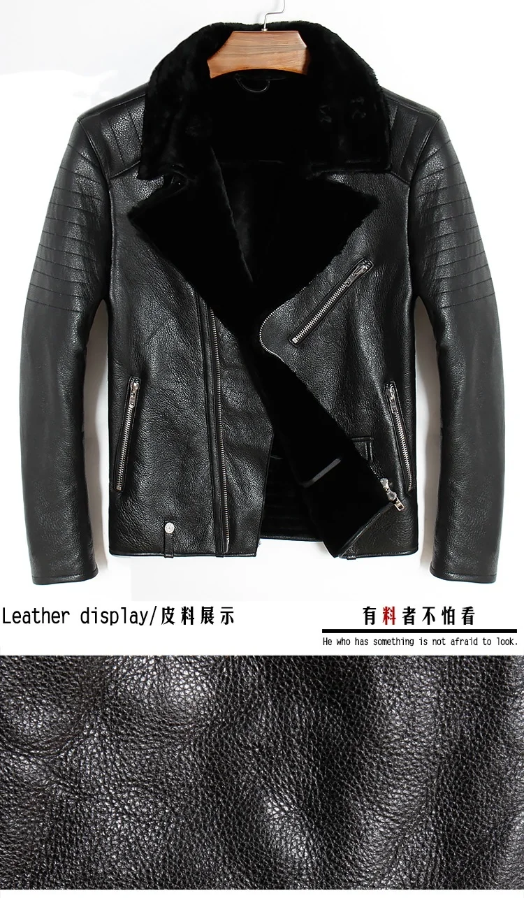 Отзывы о Бесплатная доставка овчина модная шерстяная Мужская теплая кожаная куртка