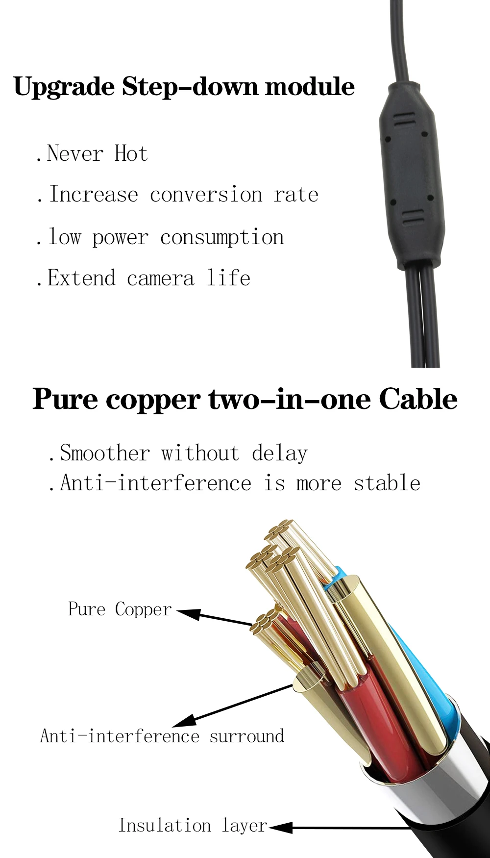 Превосходный эффект отображения камеры также заключается в обновлении понижающего модуля и премиум-медном RCA-кабеле