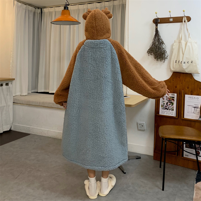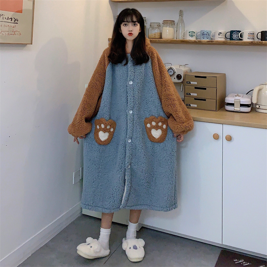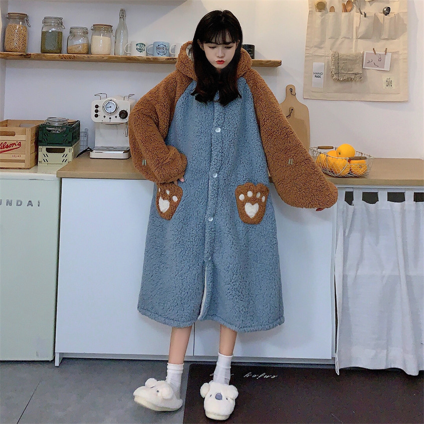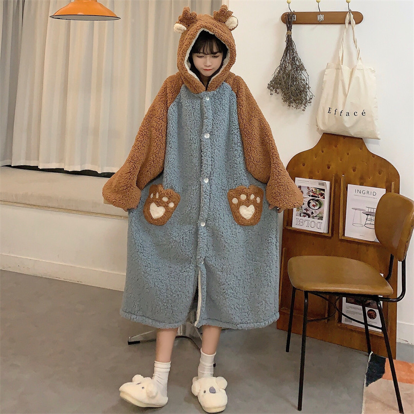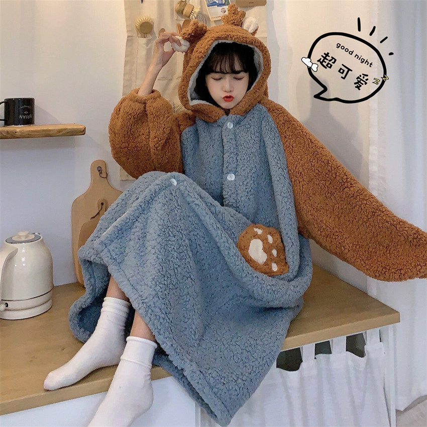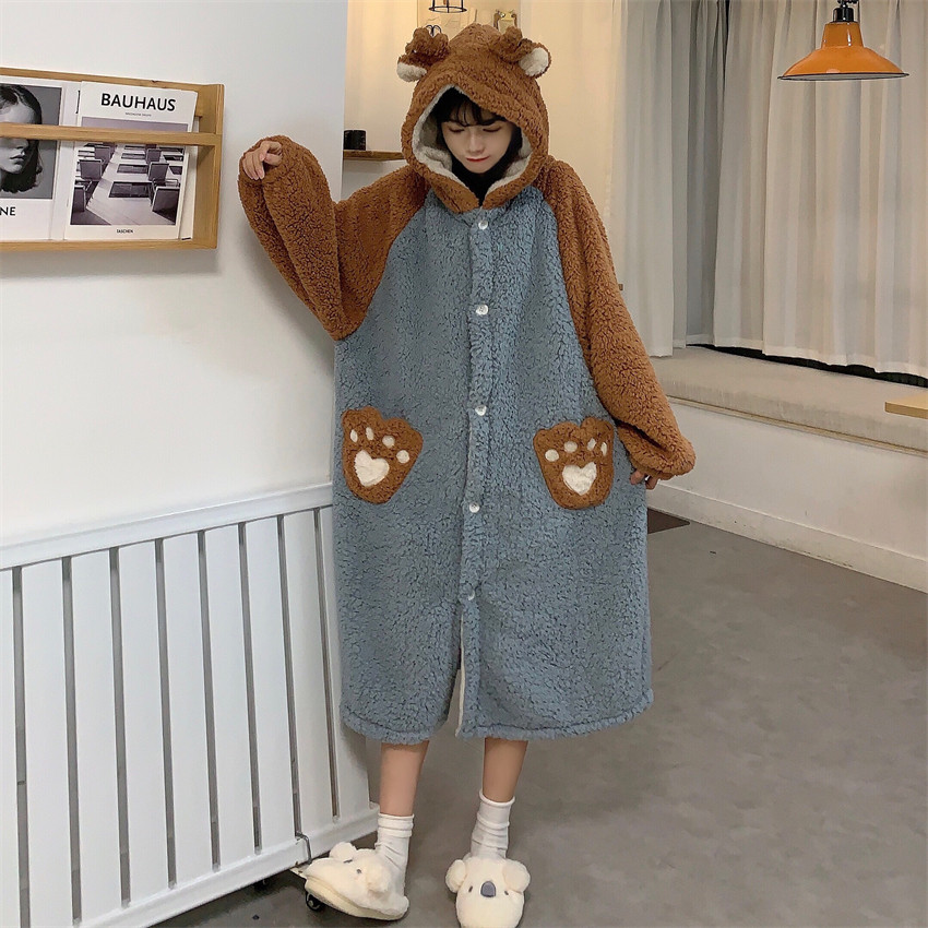 Отзывы о Зимняя Милая Ночная рубашка Kawaii Bear бантик-ушки с капюшоном из кораллового флиса