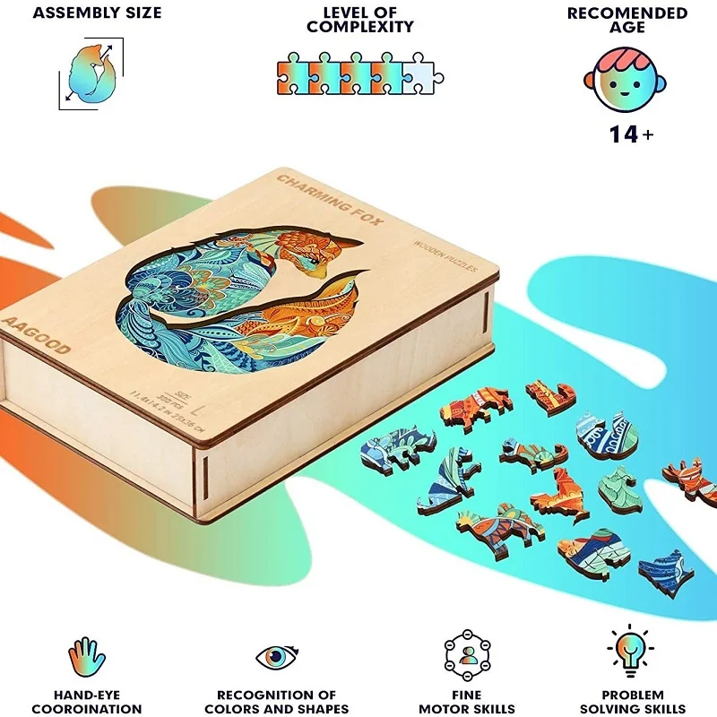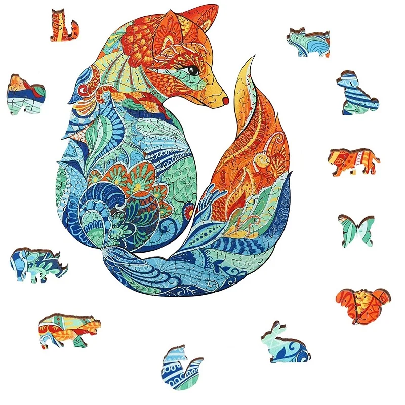 Отзывы о Деревянный пазл 3D игрушка лиса пазлы для взрослых вызов декомпрессионные