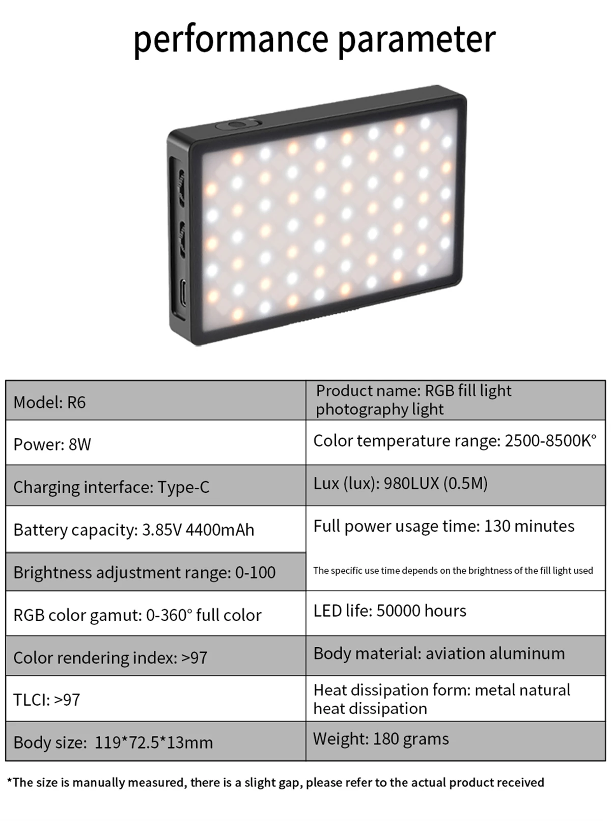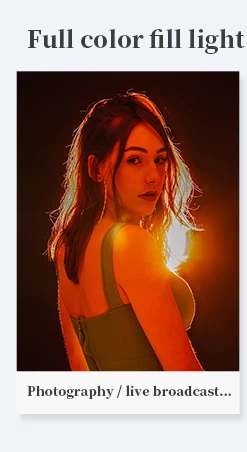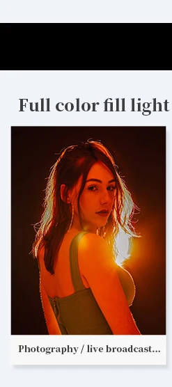 4. RGB заполняющий светильник может быть применен к различным сценам, таким как ПОРТРЕТНАЯ ФОТОГРАФИЯ, светильник для фотосъемки, еще объективный светильник для съемки, наружный прямой трансляционный светильник ing, сцена спецэффектов формирования и т. Д.