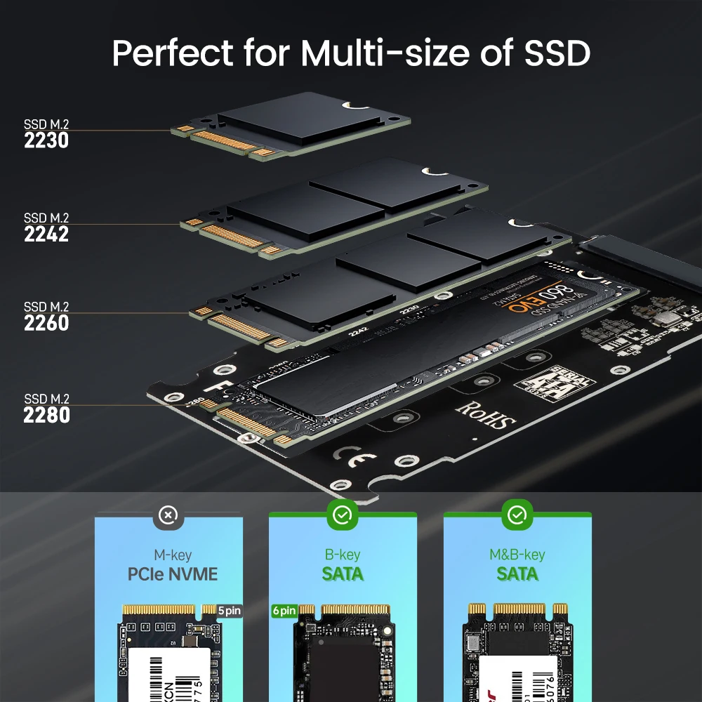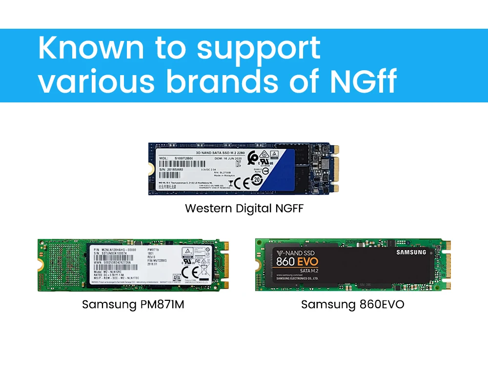Поддержка только M.2 SATA на основе B / B + M Key ssd. Не поддерживает PCIe / NVMe / AHCI M Key SSD.