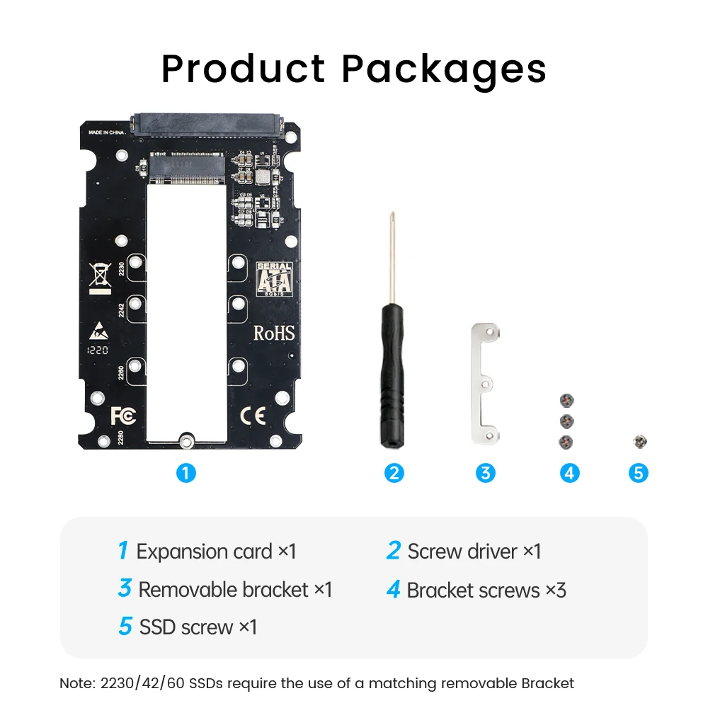 【Support M2 SSD】 2280 / 2260 / 2242 / 2230 мм M.2 NGFF(SATA) SSD и sata 3 резьбового соединения: Максимальная скорость передачи данных до 6 Гбит/с.