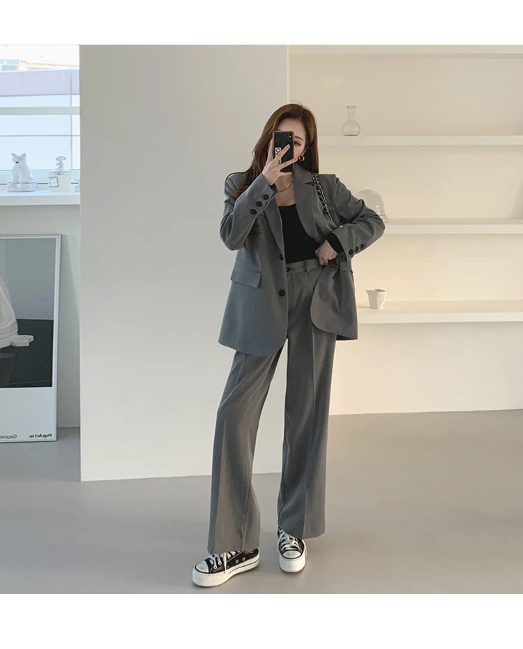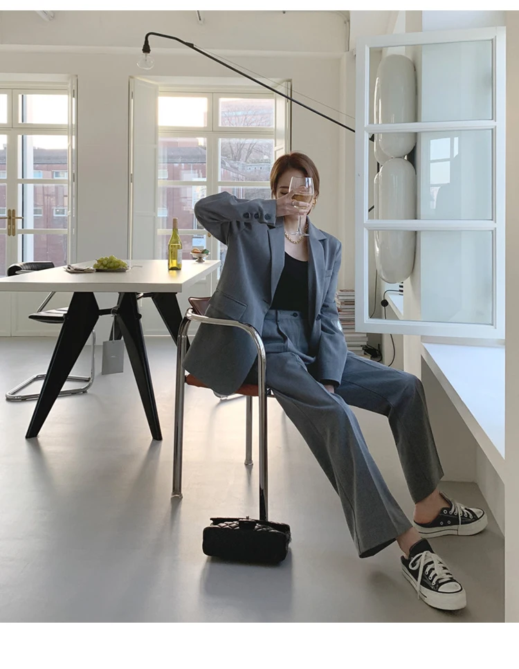 Отзывы о HziriP серый комплект из 2 предметов прямые свободные брюки офисная форма шикарные