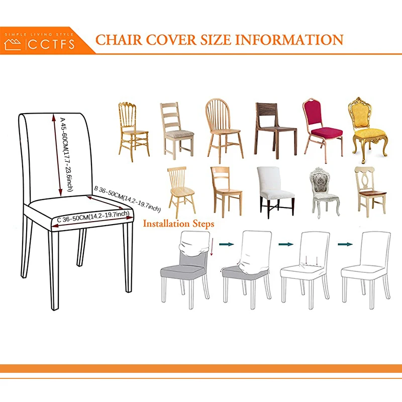 Чехлы для стульев для столовой являются бесцветными и устойчивыми к катышкам для долговечности. Эти большие чехлы для стульев можно легко надевать и держать на месте. Пожалуйста, будьте осторожны, если стулья имеют изогнутую заднюю часть, кажется, что крышки маленькие отверстия при нанесении на стулья большого размера.
