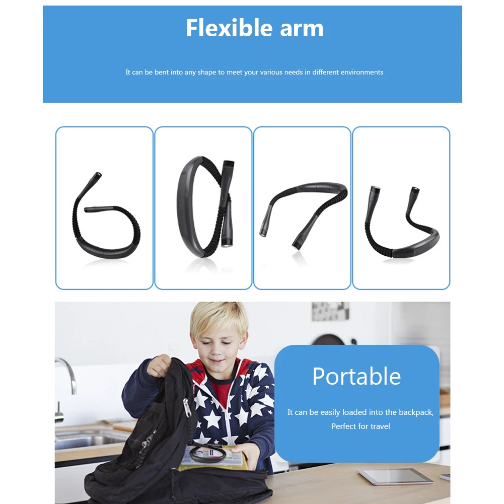 1. Эта лампа для чтения имеет сверхдлинную гибкую руку, которую можно обернуть или сложить в любую форму, обеспечивая вам лучшую стабильность угла освещения. Руки полностью освобождены, и вы можете больше фокусироваться на выполняемой работе. Особенно подходит для вязания и ночного бега.