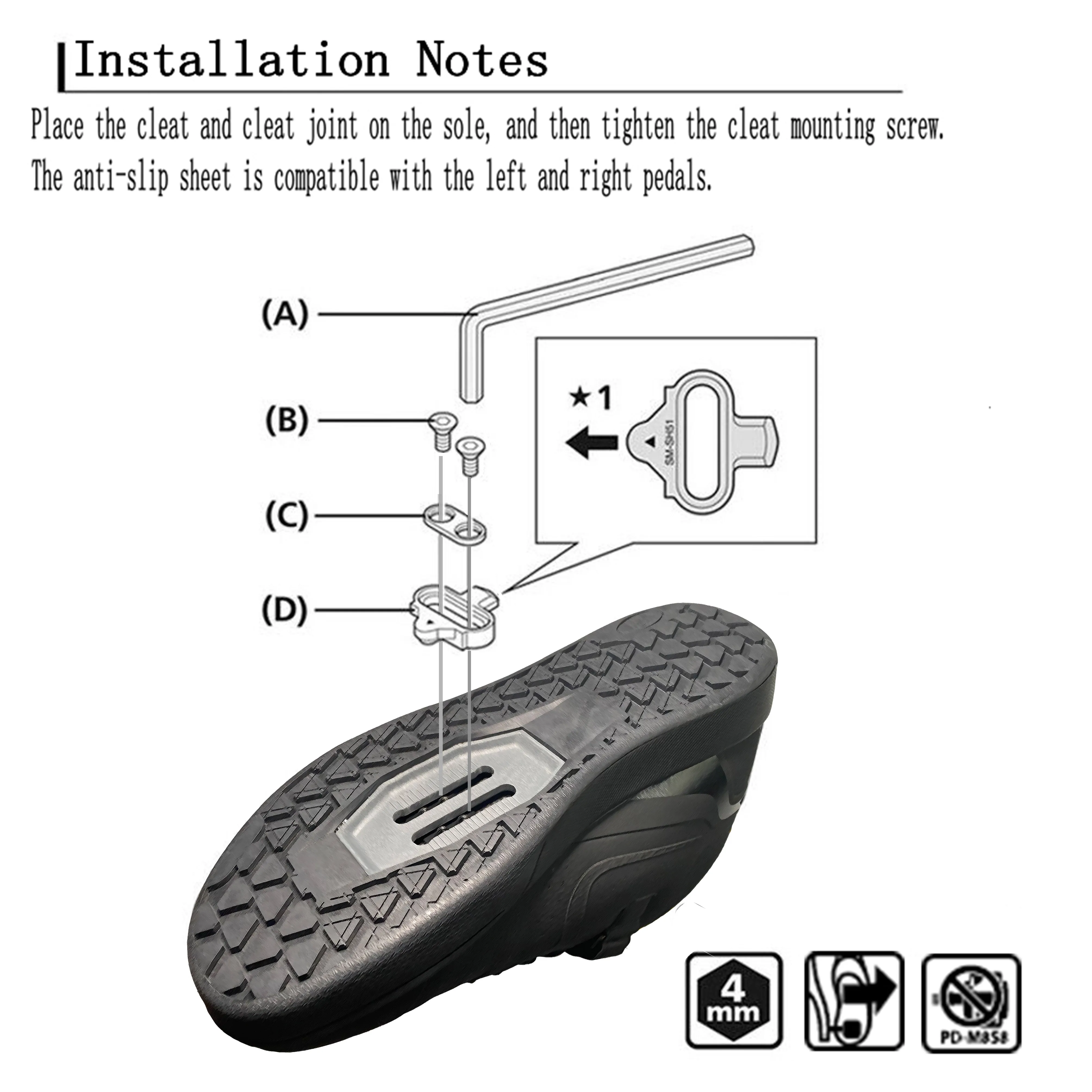 2. Подходит для большинства велосипедных ботинок-регулируемая конструкция с двумя отверстиями подходит для большинства велосипедных ботинок с 2 отверстиями на дне. Обувь унисекс подходит как для мужчин, так и для женщин. Каждая посылка поставляется с 2 бутсами, 2 металлическими пластинами, 2 болтами