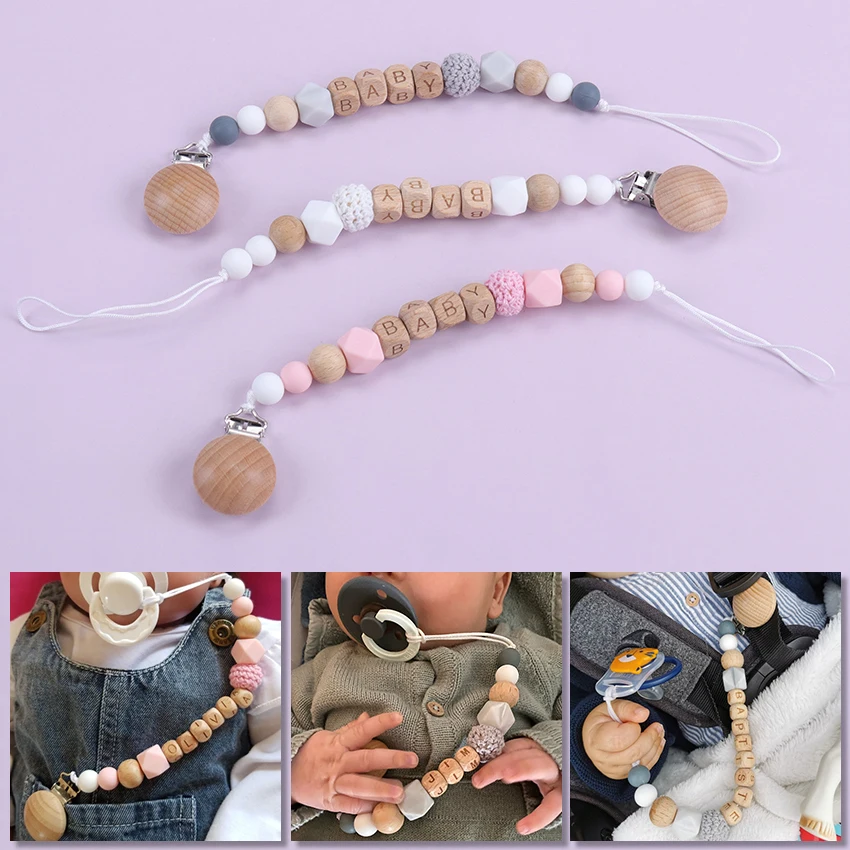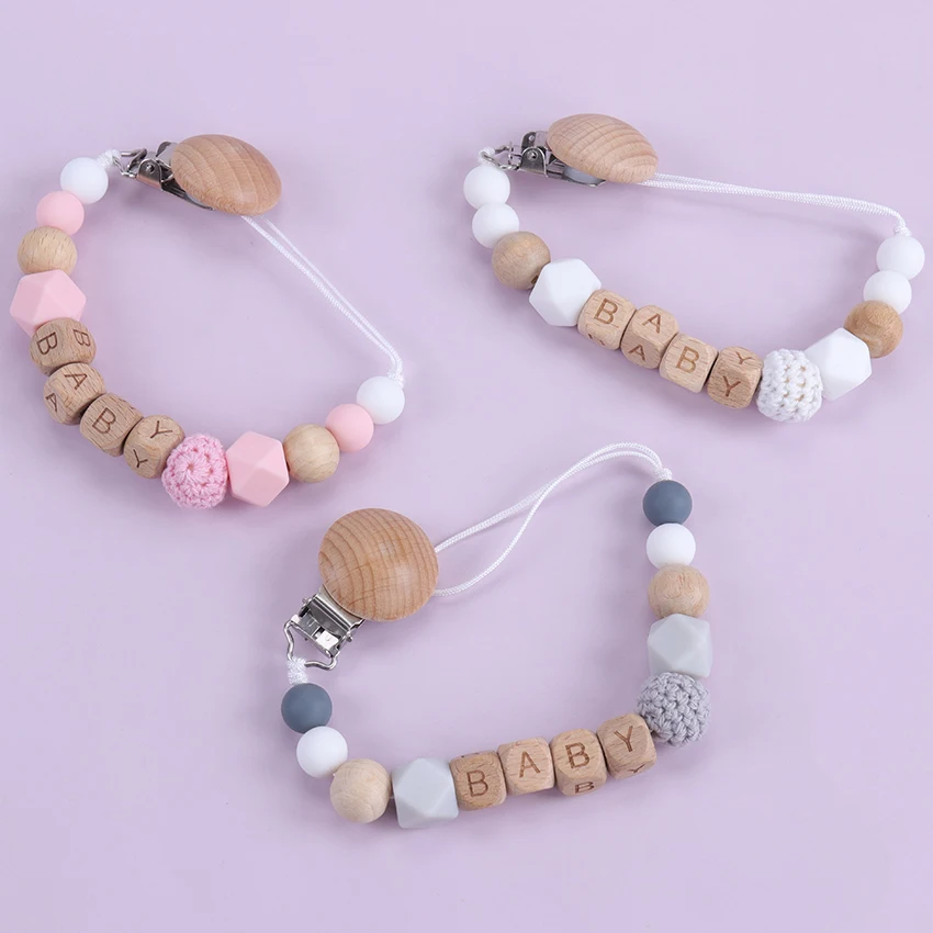 1 шт. буквы силиконовая деревянная пустышка зажимы безопасное прорезывание зубов цепь ребенка прорезыватель Эко-дружественных зажимы для пустышки держатель