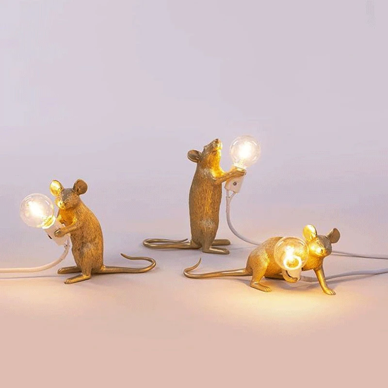 Постмодерн Смола животное крыса стол с мышкой лампа маленькая мини мышь милый светодиодный ночник домашний декор настольные светильники прикроватная лампаМатериал: смола
