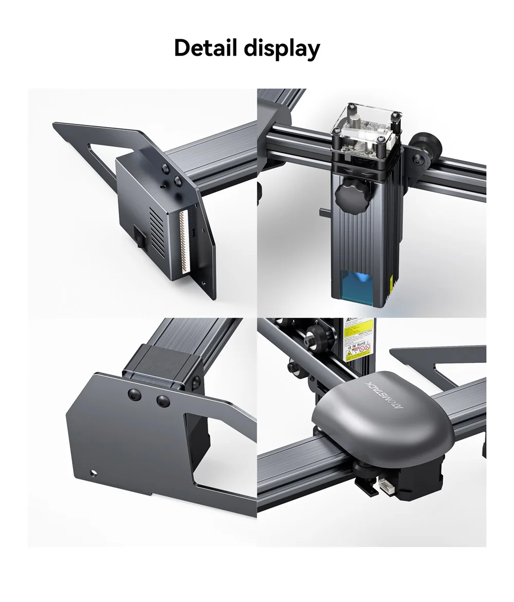 2. Прочная и простая в установке конструкция конструкции: полностью из алюминиевого сплава анодированная конструкция делает машину более прочной и улучшает точность гравировки. Портативная Цельнометаллическая конструкция, 85% предварительная сборка, может быть установлена в течение 5 минут.