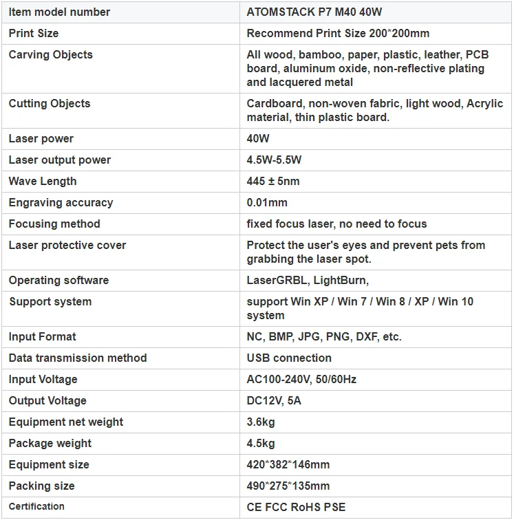 В: Новый лазер ATOMSTACK P7 M40 40W в описании информирует 4,5 W-5,5 W, не будет ли он 40W?