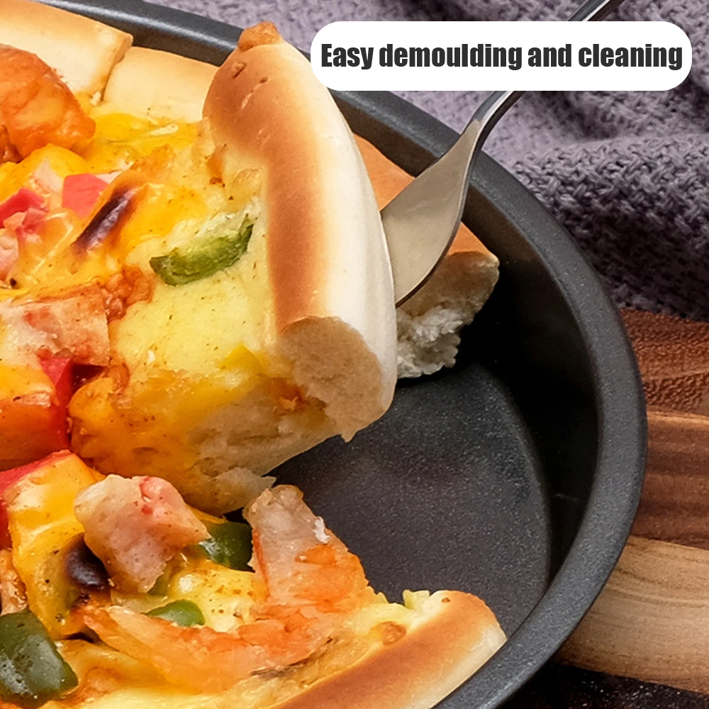 【 С антипригарным покрытием Coating】Эта ручная жаропрочная посуда для пиццы имеет антипригарное покрытие, которое легко высвобождается из формы. Поверхность не липкая. Можно использовать или не использовать небольшое количество масла. Он обладает хорошей теплопоглощающей способностью и позволяет легко вынимать хлебобулочные изделия из лотка для выпечки. Нелегко сломать.