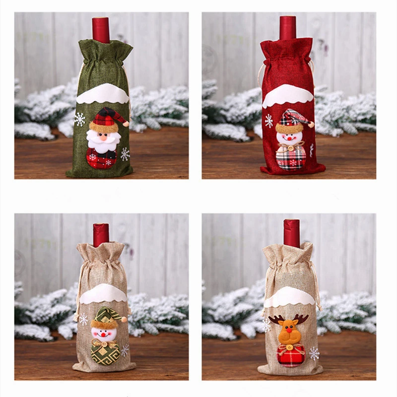 Рождественские украшения льняная крышка для бутылки с красным вином 1 шт рождественские украшения для дома прекрасный ветер Рождественский Декор Стола